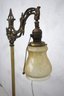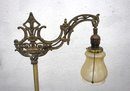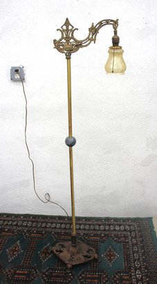 This stunning 58” antique Art Nouveau bridge arm floor lamp features an ornate cast iron and brass design, making it a perfect statement piece for vintage or classic interiors.