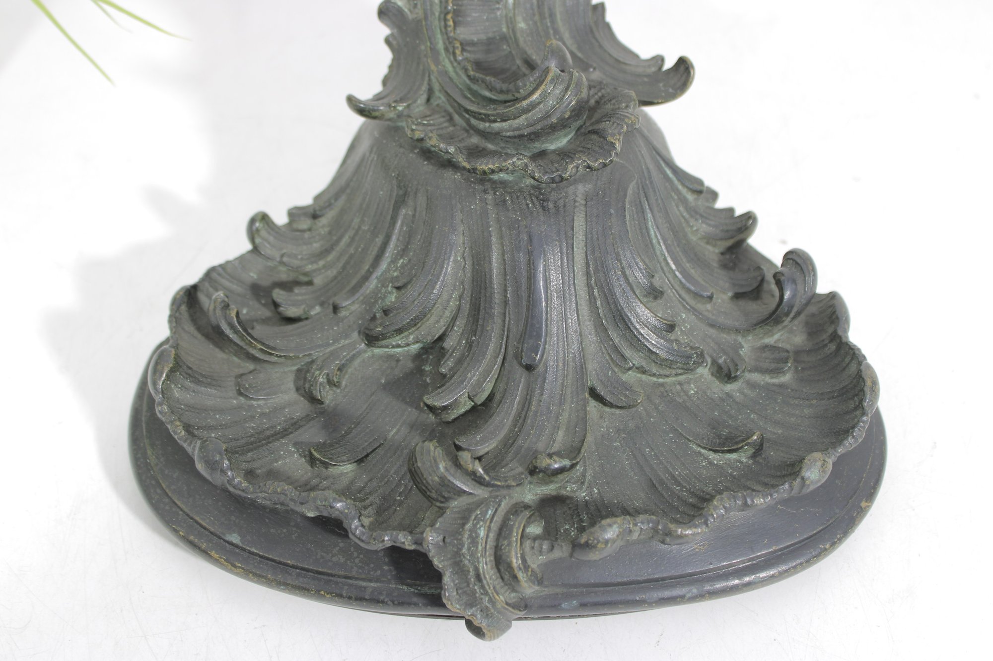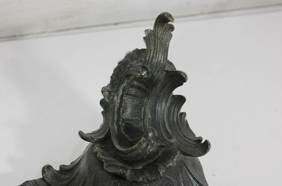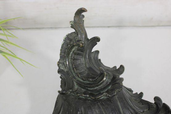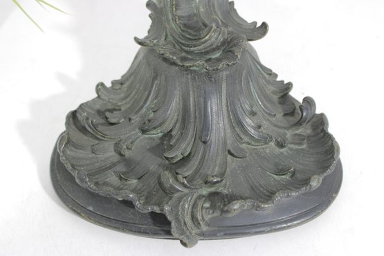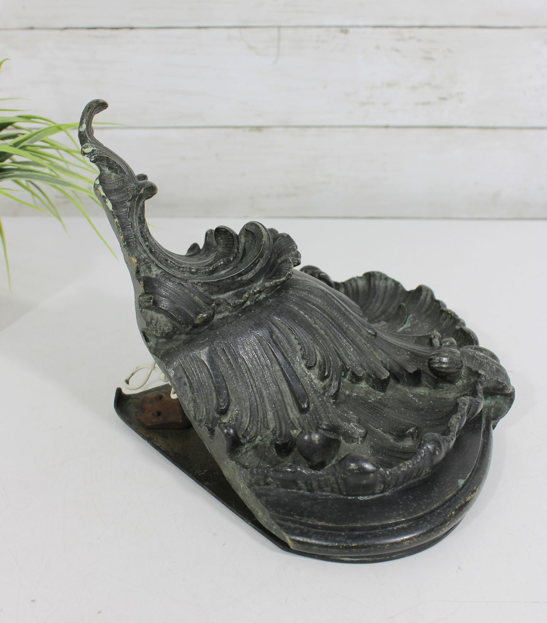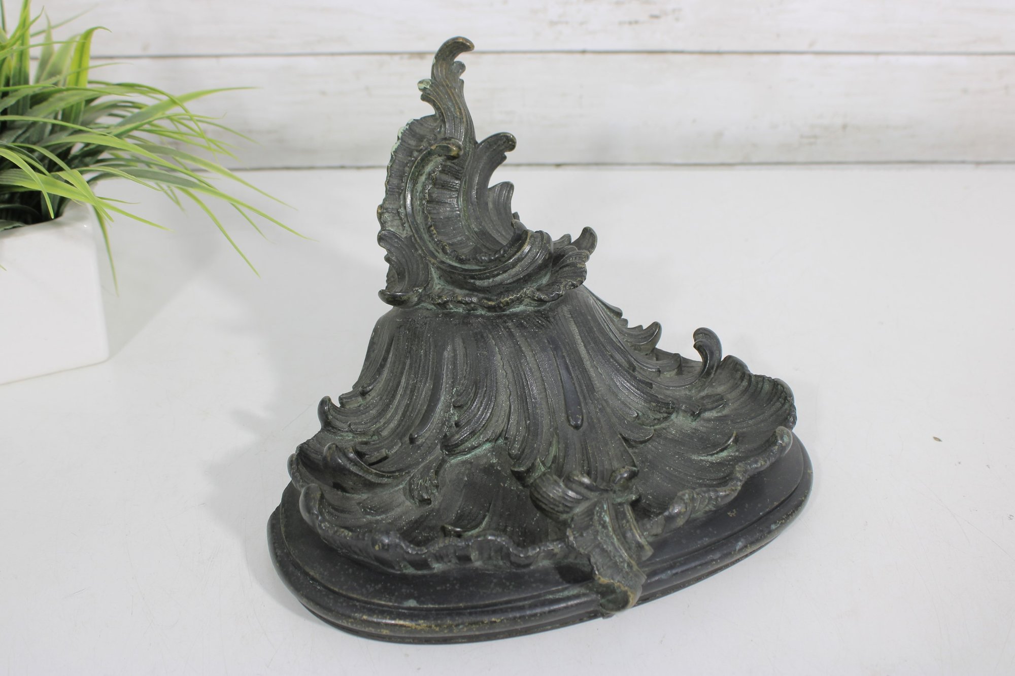 Beautiful antique Art Nouveau style metal base featuring an ornate flowing floral and scroll design. The piece showcases elegant curves and detailed craftsmanship typical of the period, with a naturally aged patina that enhances its character.