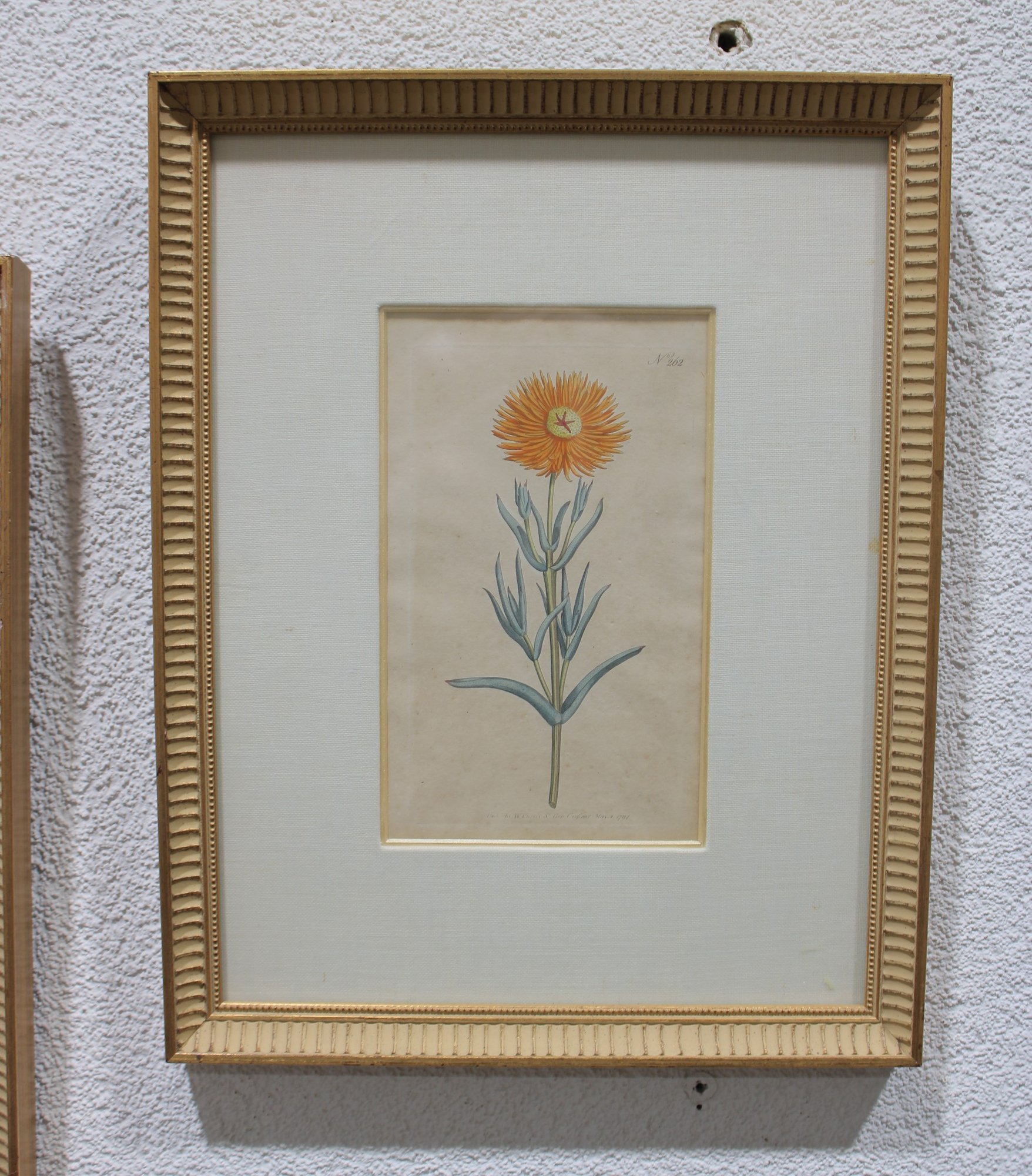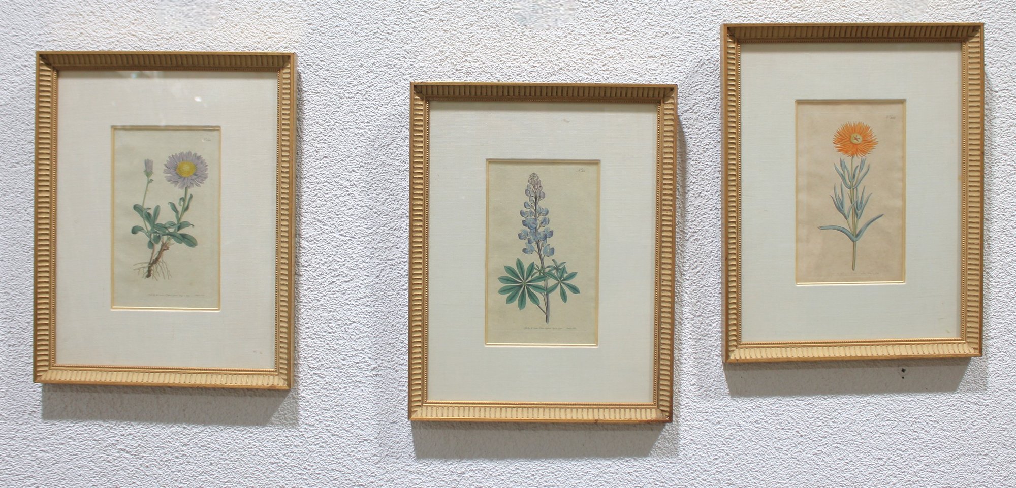 A refined set of three antique botanical engravings, each delicately hand-colored and presented in matching gilt frames. These classic floral studies exemplify the precision and elegance of 18th–19th century botanical illustration, originally created for scientific reference as well as aesthetic appreciation.
