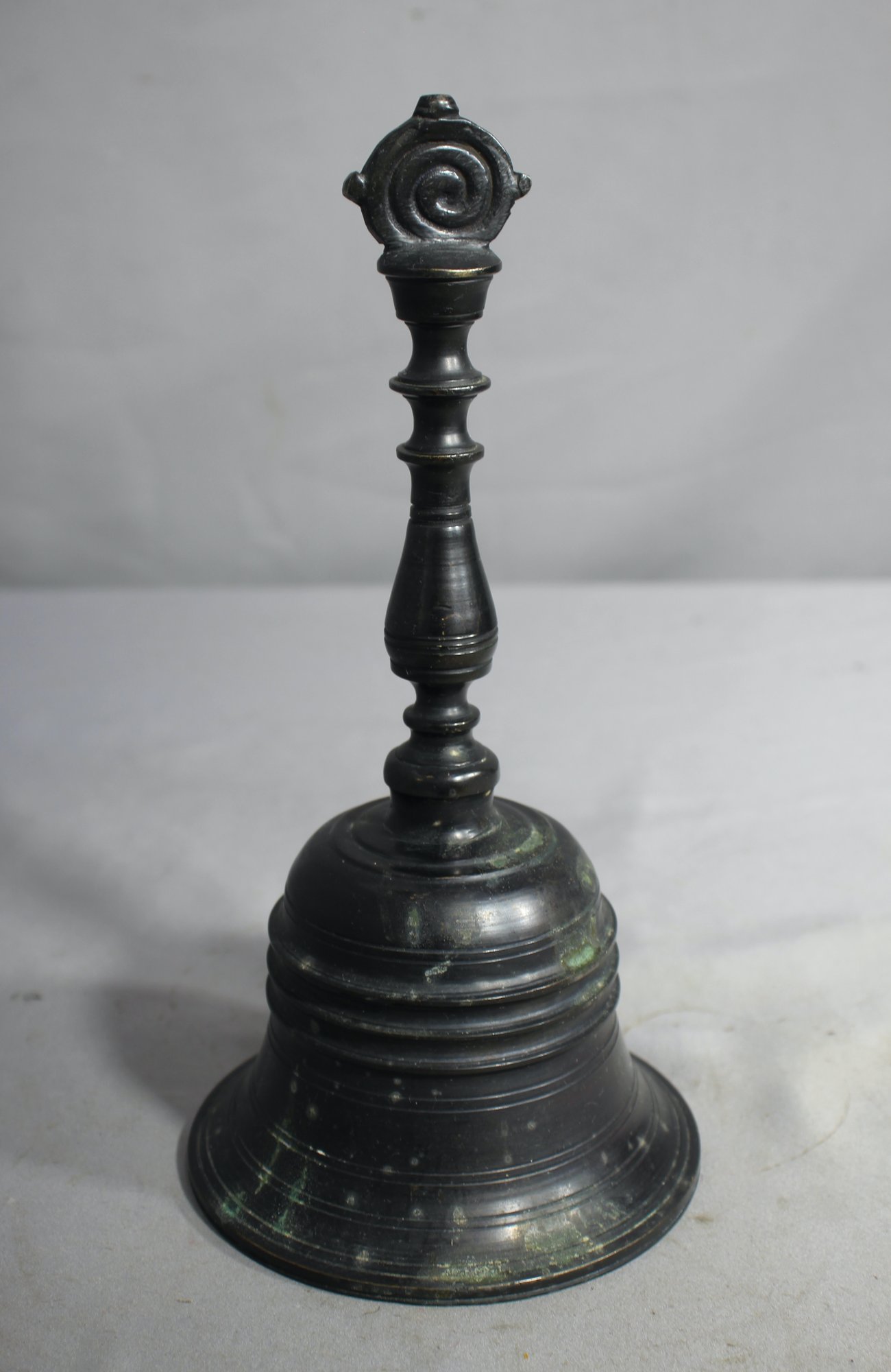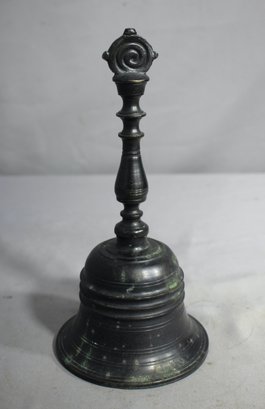 Antique Bronze Hand Bell With Unique Spiral Handle