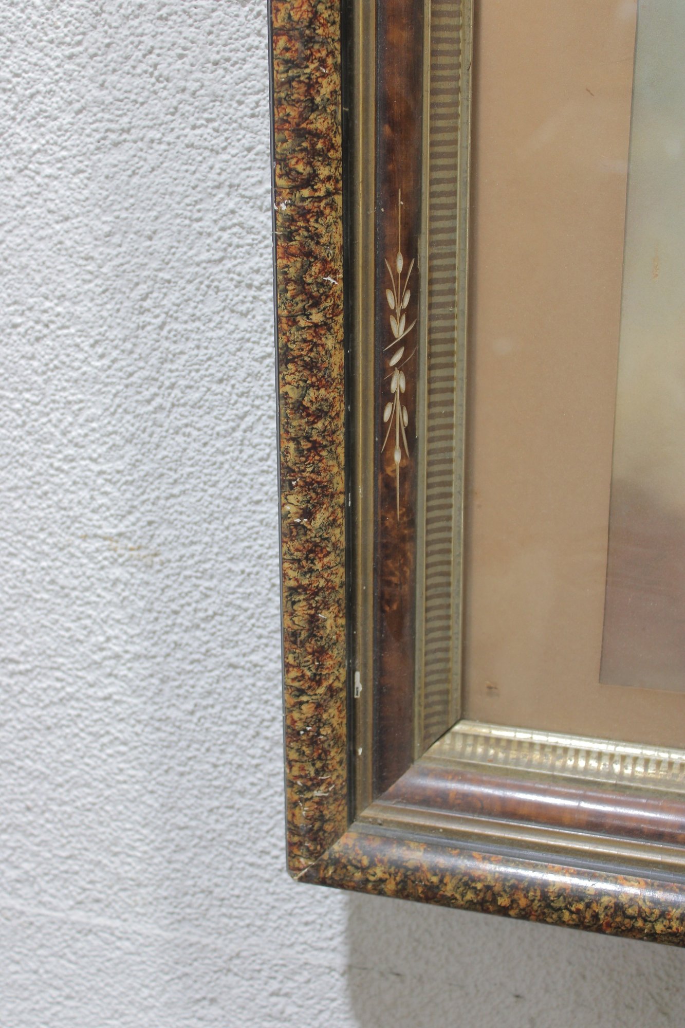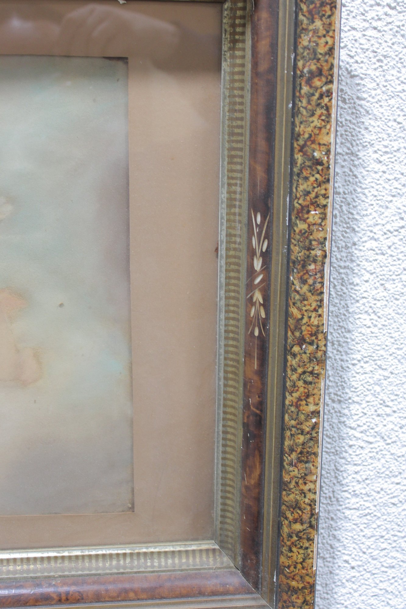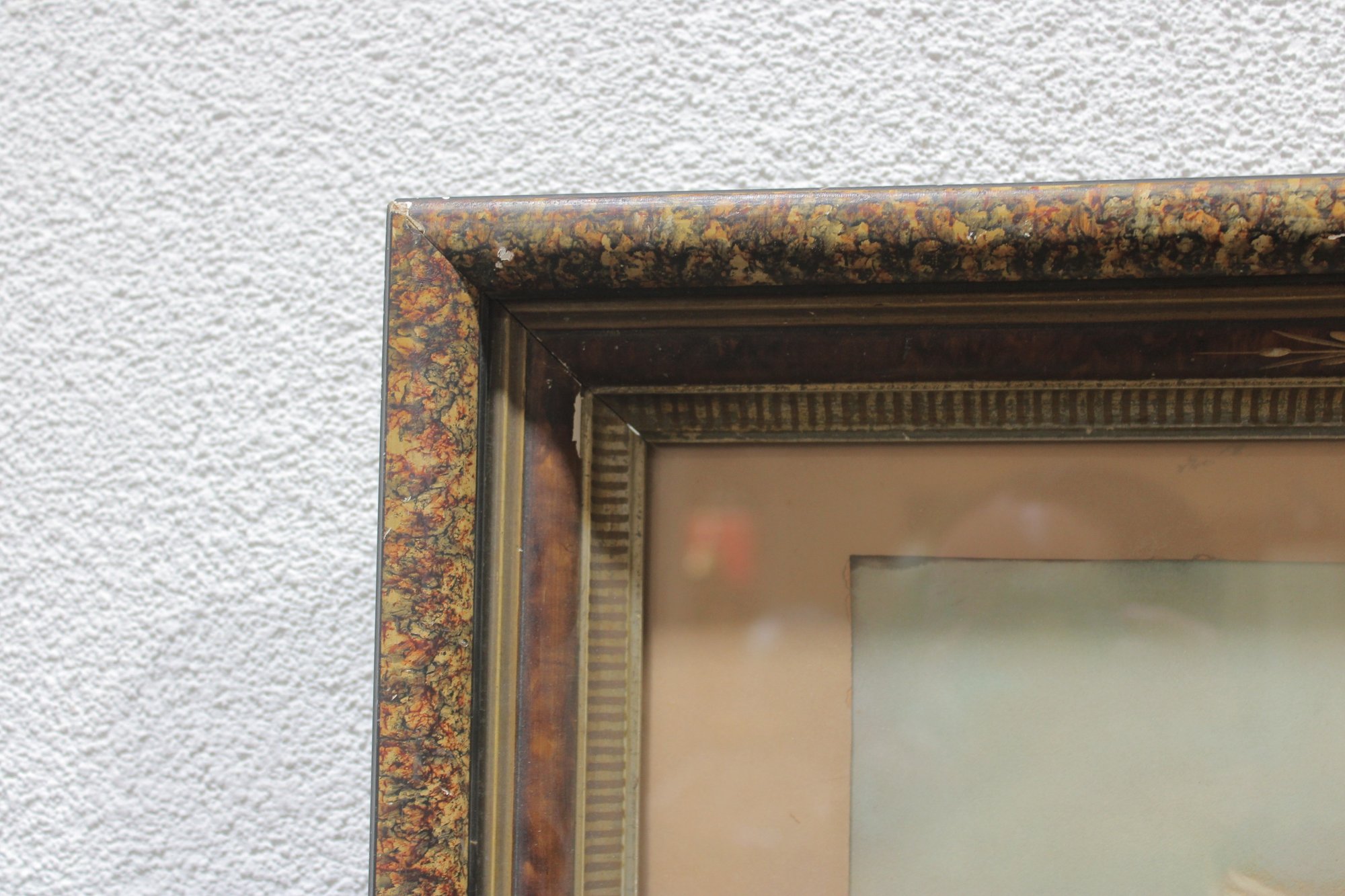 The artwork is housed in a decorative period frame with warm, mottled gilt detailing and layered molding, adding depth and character to the presentation. The overall look is classically romantic and decorative
