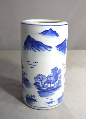 Antique Chinese Brush Pot Blue And White