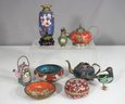 Two Ornate Cloisonné Teapots – Featuring elaborate floral and geometric patterns, accented with metal appliqué and decorative finials.
