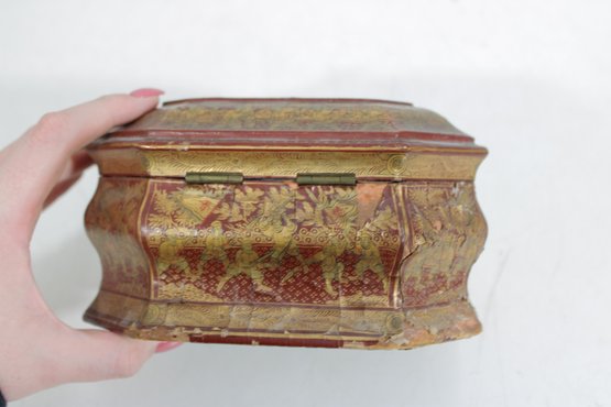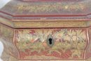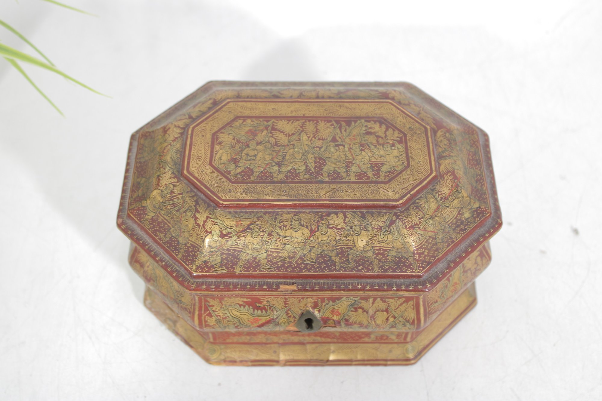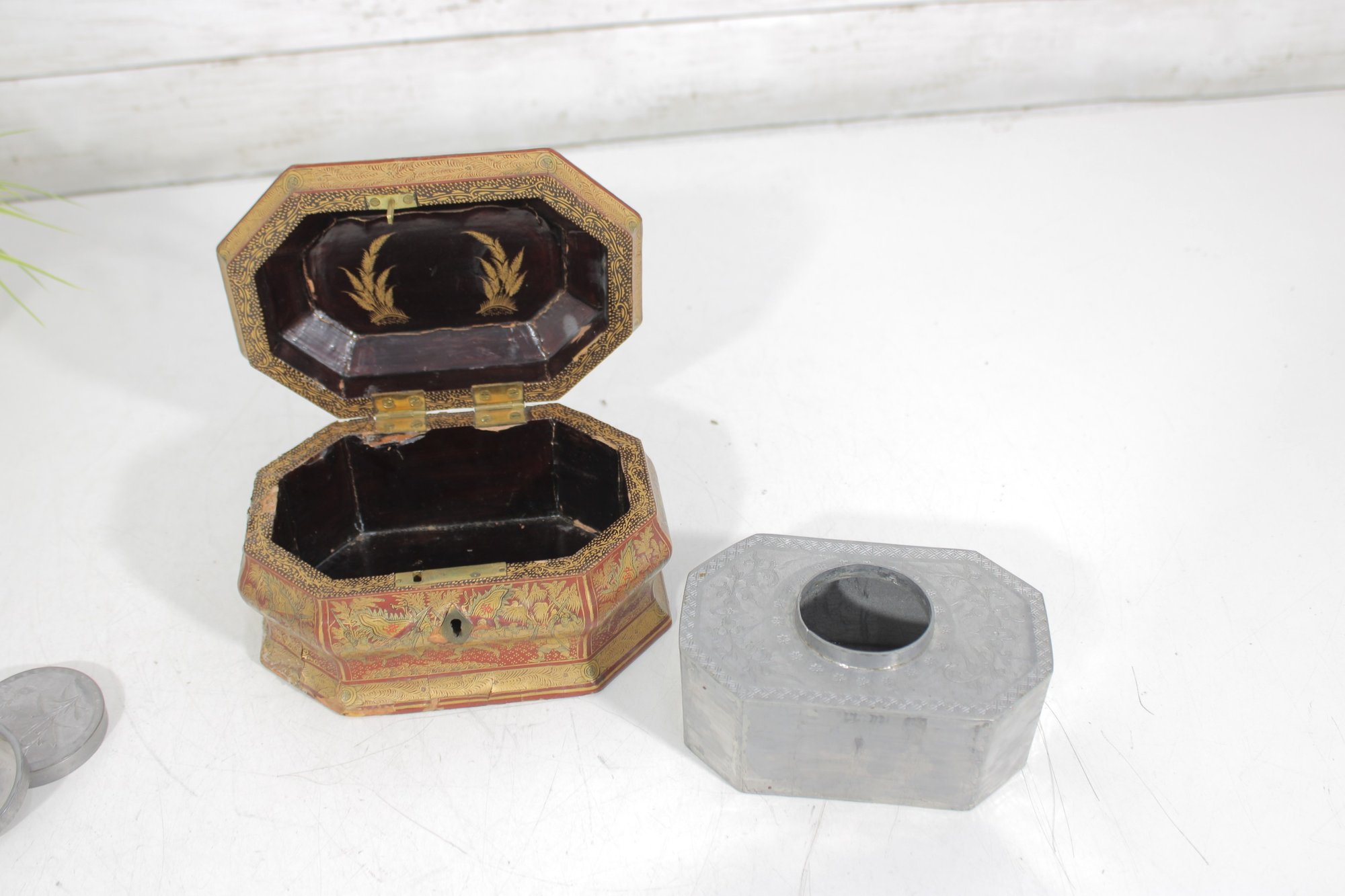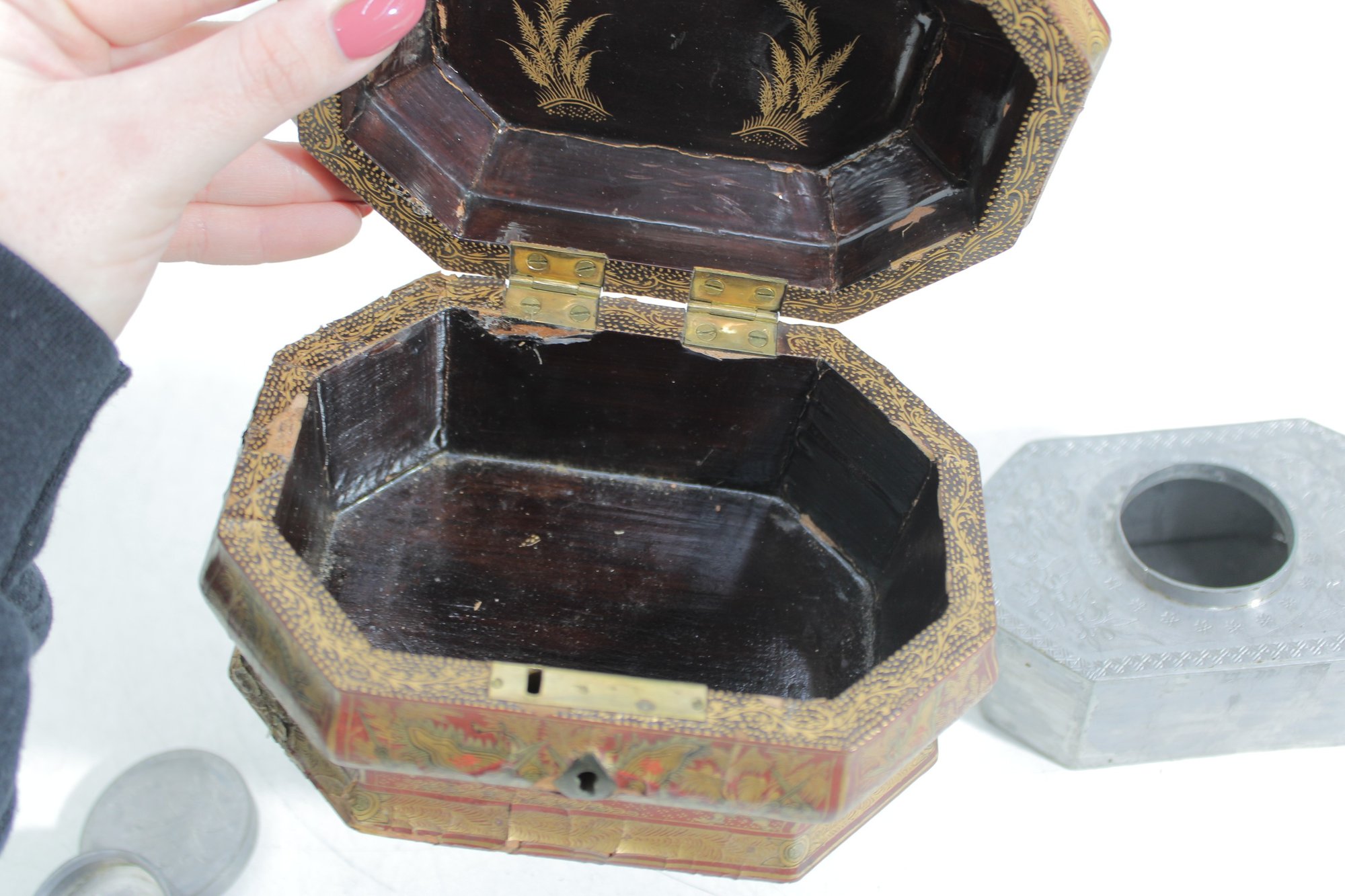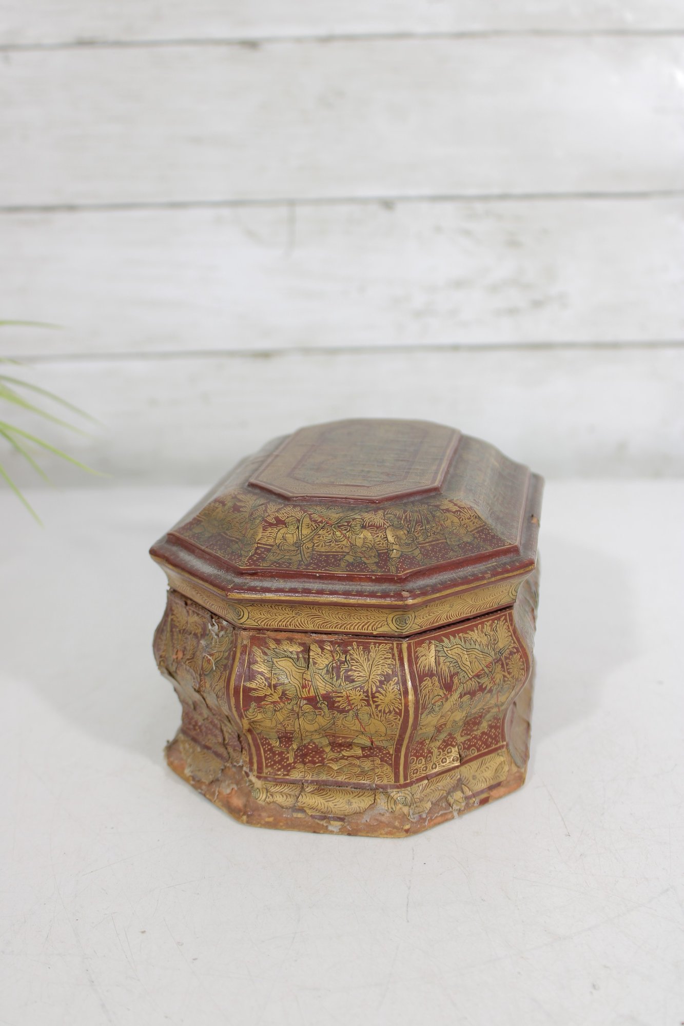 Chinese lacquer tea caddies like this were produced for the export trade in the 18th and 19th centuries, used to store valuable loose-leaf tea. Today they are highly sought after by collectors of Asian antiques, tea-related objects, and decorative lacquerware.