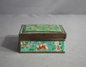 Renowned for its delicate beauty, the box is meticulously hand-painted with a delightful floral motif in a vivacious palette of greens, oranges, and whites, signature to the Famille Rose style.