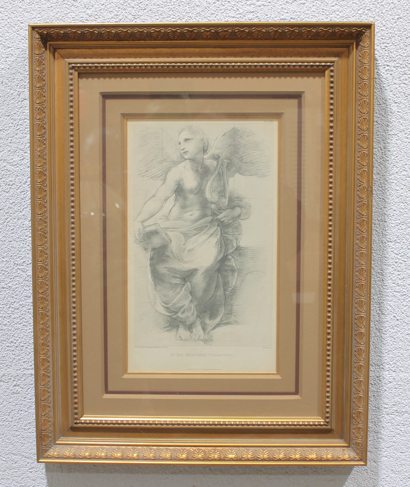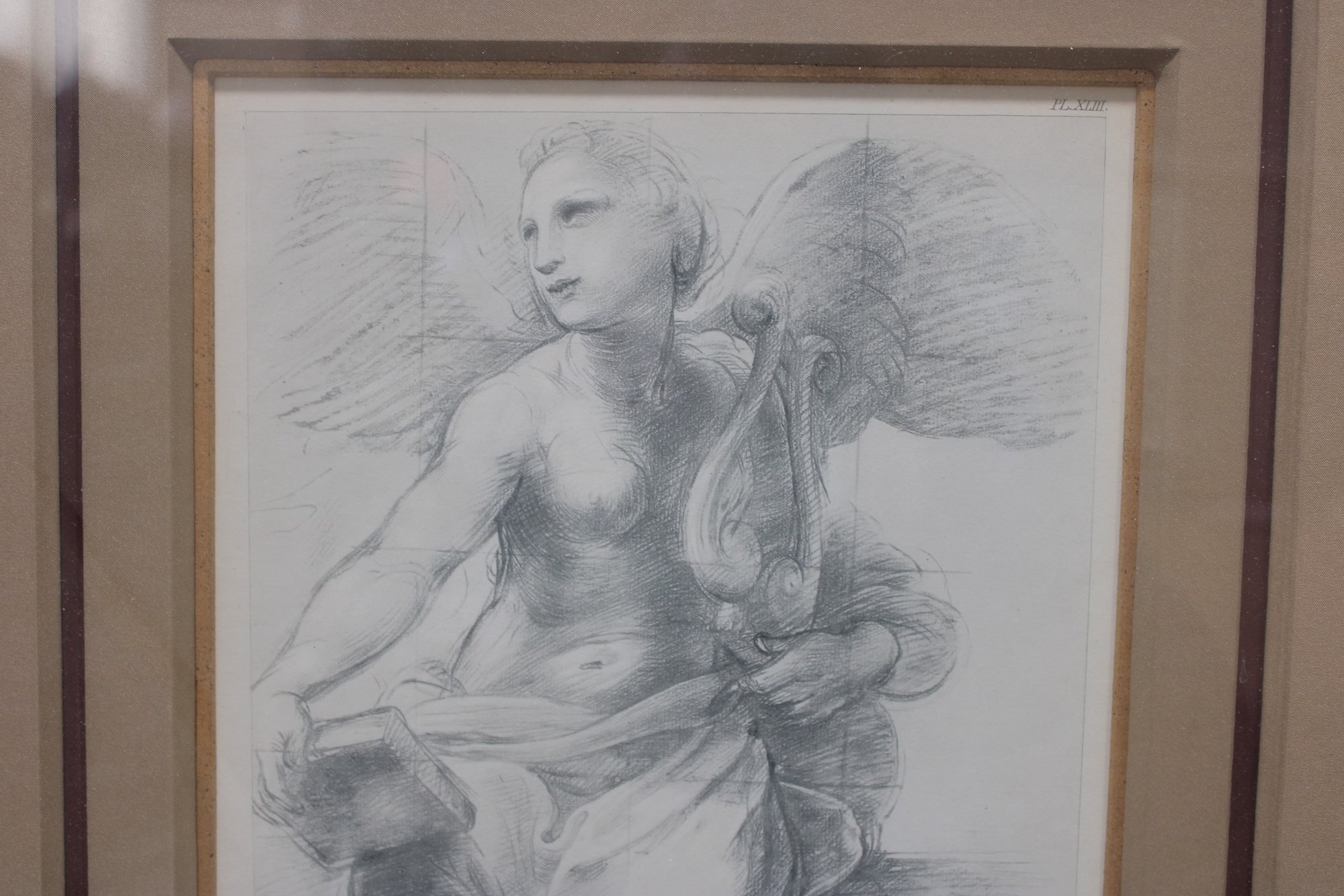 This elegant antique engraving depicts a classical allegorical figure with wings, rendered in a refined academic style inspired by Renaissance and Neoclassical traditions. The figure’s graceful pose, carefully modeled anatomy, and soft shading demonstrate the high level of draftsmanship characteristic of 19th-century European engravings after classical and Old Master compositions.