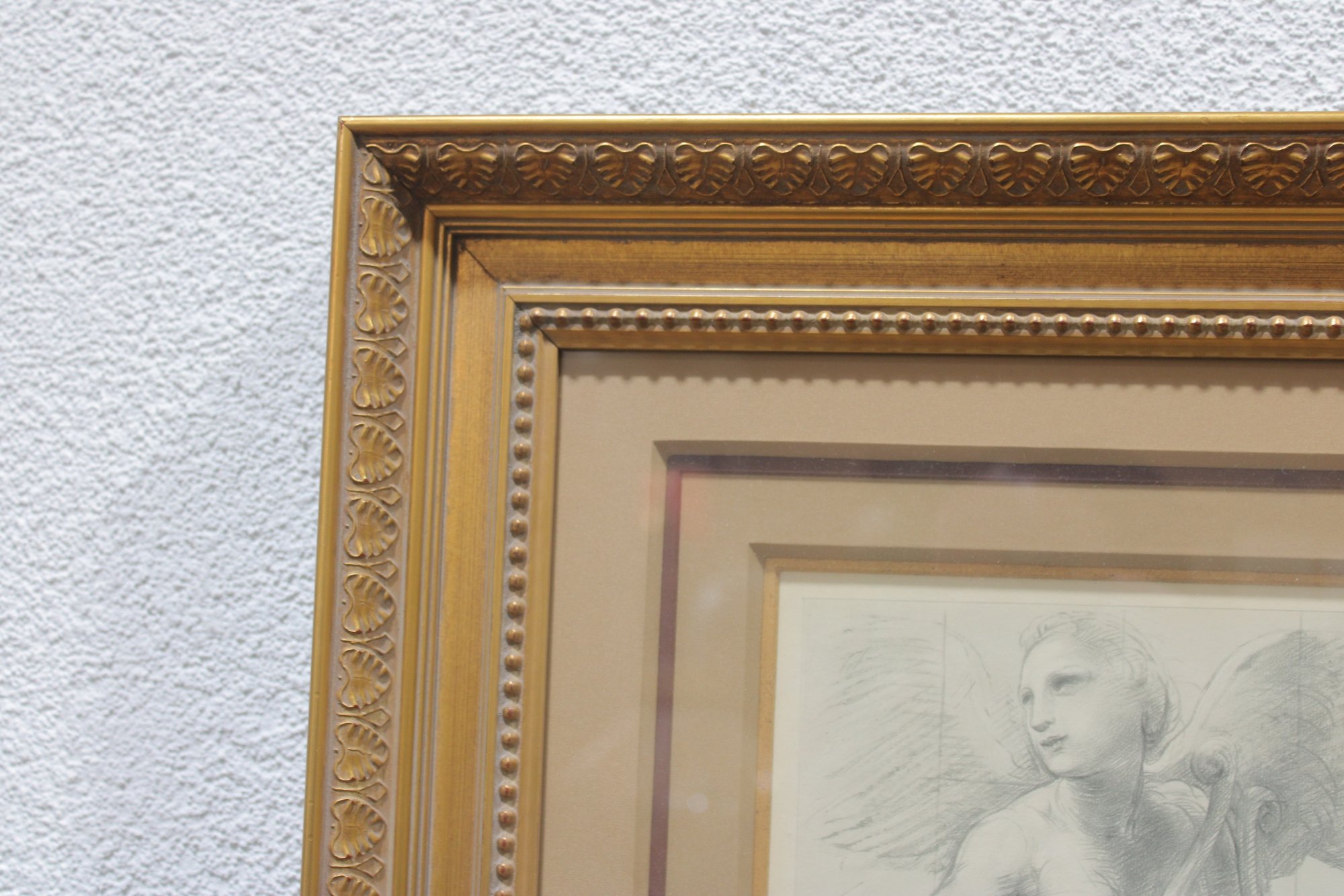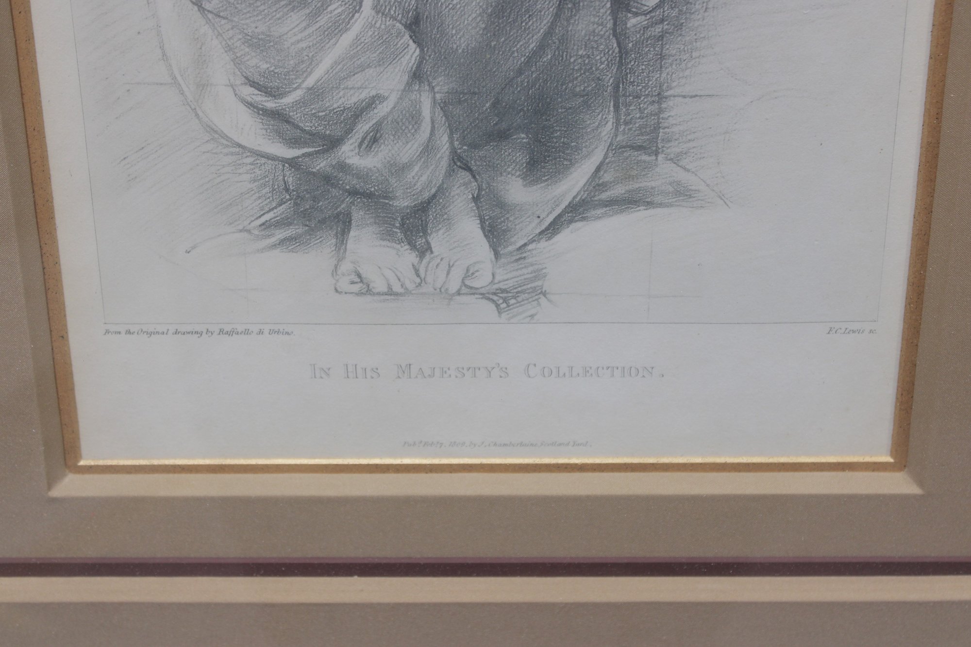 The engraving is handsomely presented in an ornate gilt wood frame with layered molding and a complementary mat, enhancing its formal appearance and making it ready for display. A label on the reverse indicates its origin as a fine art engraving, adding historical context and collector interest.
