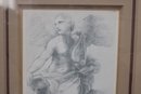 The image is executed in delicate monochrome tones, emphasizing form, movement, and expression rather than color. The subject’s contemplative gaze and flowing drapery lend the work a timeless, almost sculptural presence.