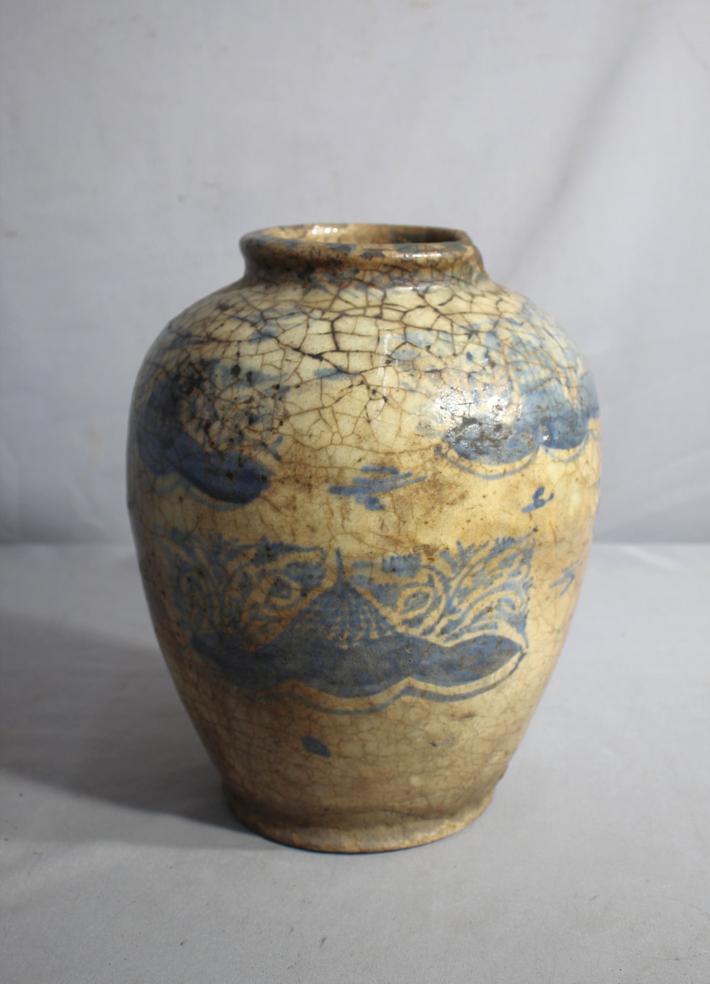 The vase shows a beautiful patina indicative of its age, with the crackled glaze prominently displayed, enhancing its vintage appeal.