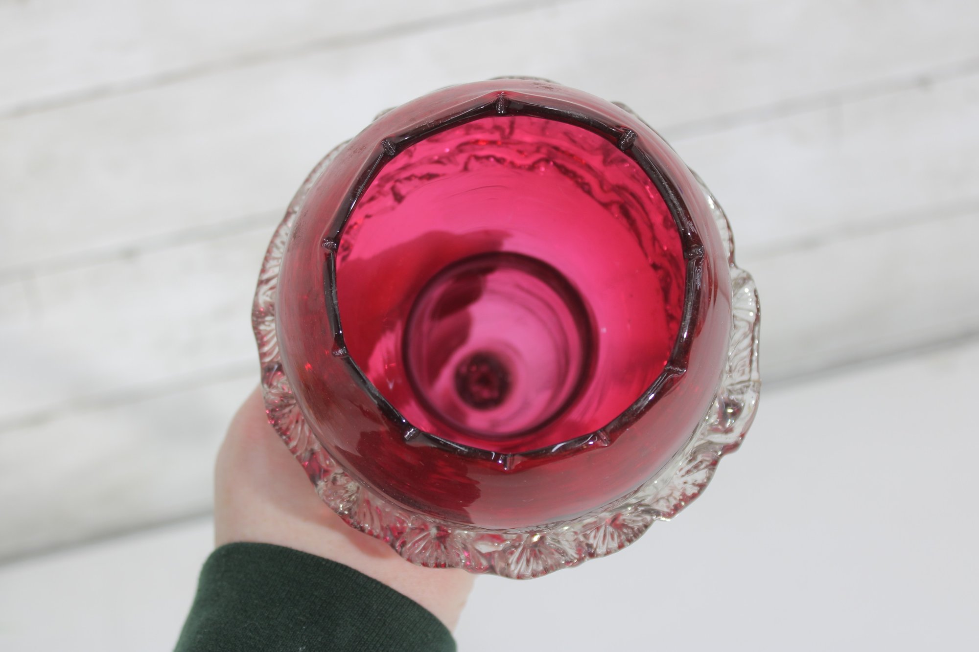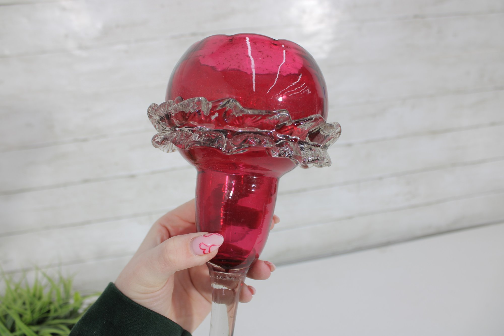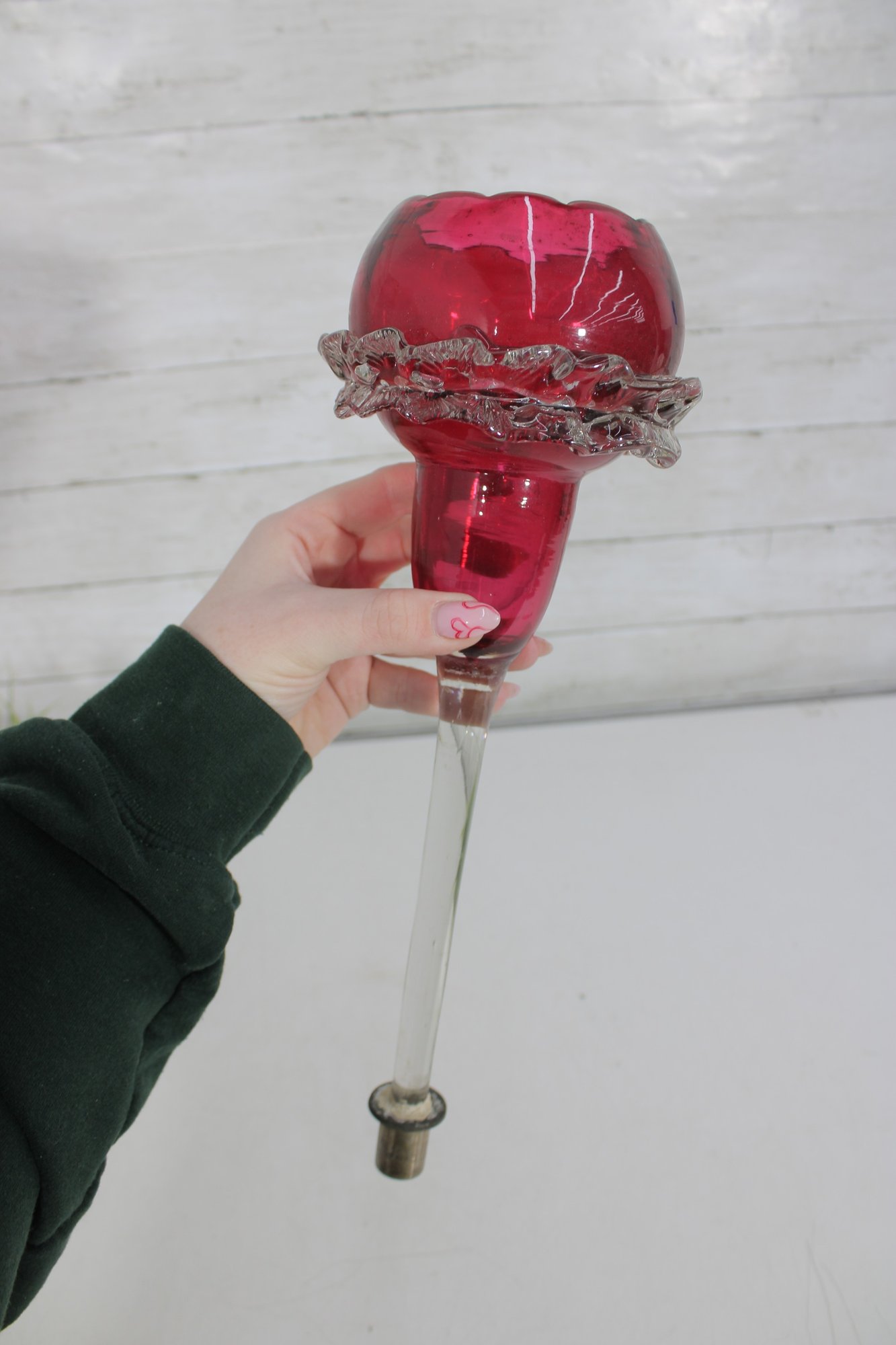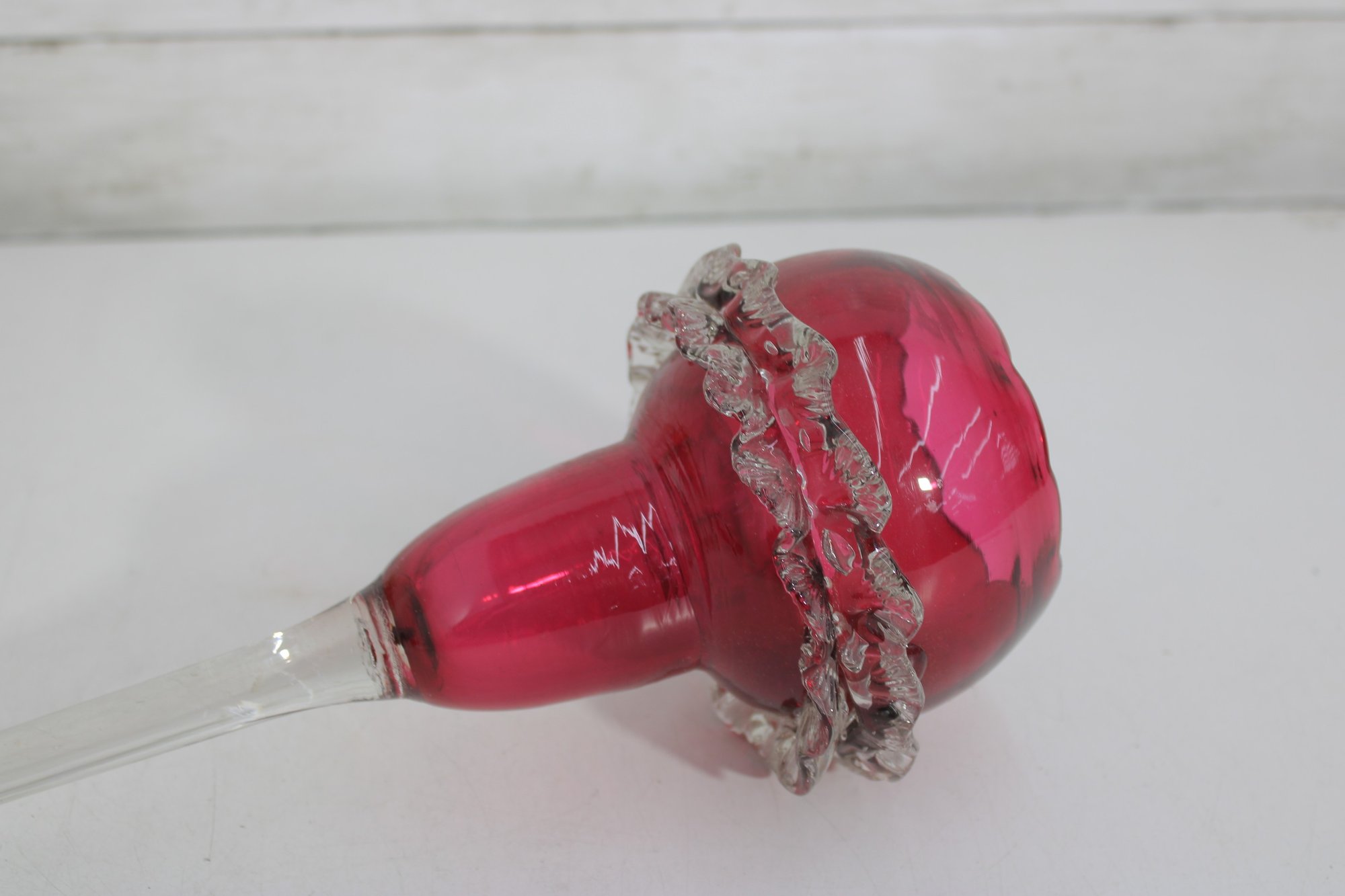 Antique Cranberry Glass Stopper With Clear Stem 14.5 H Victorian Decorative Glass