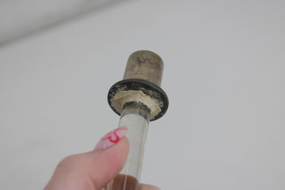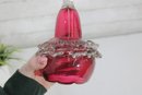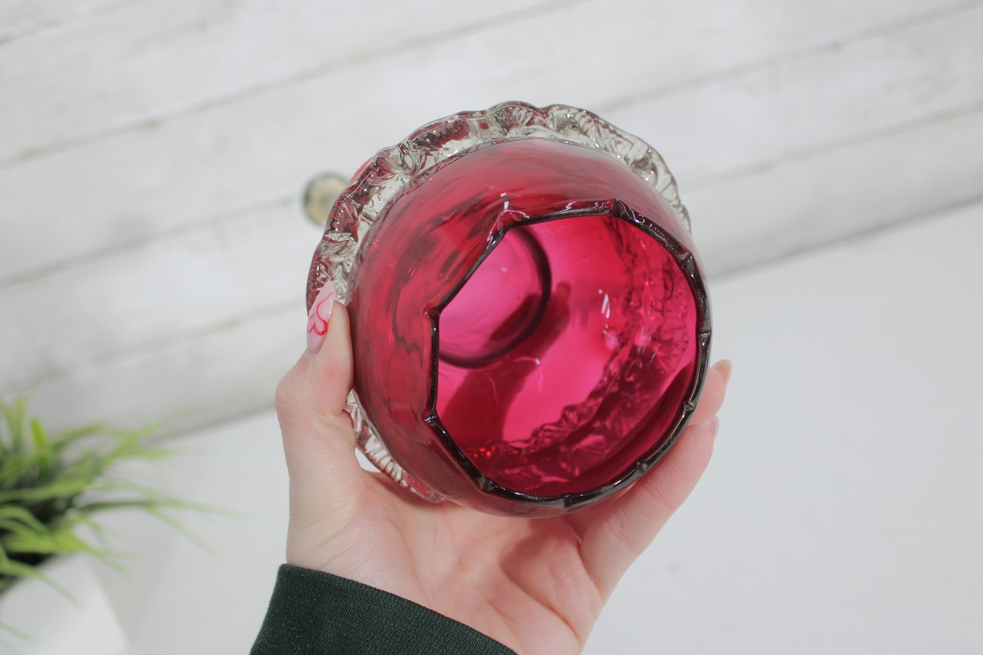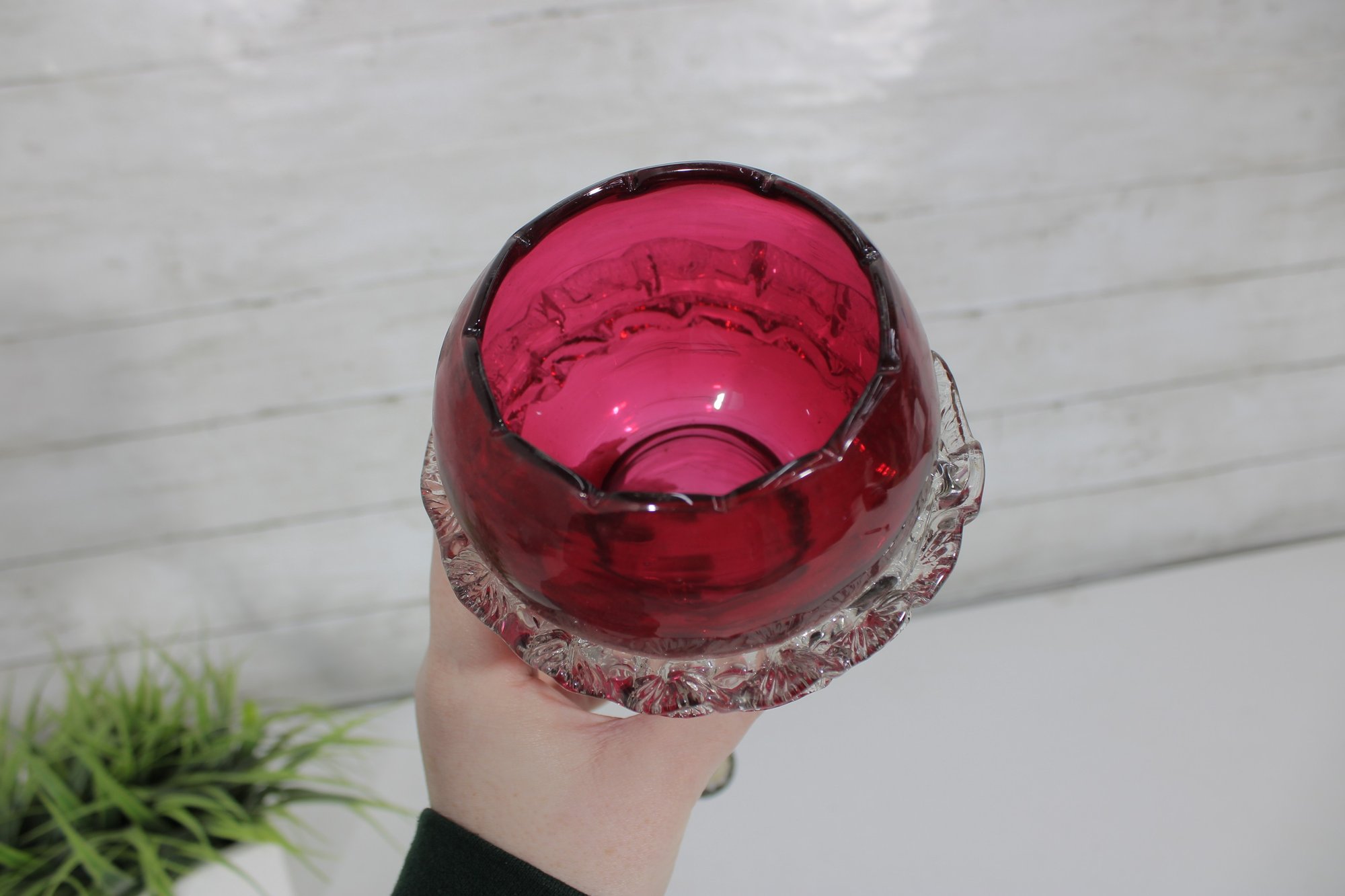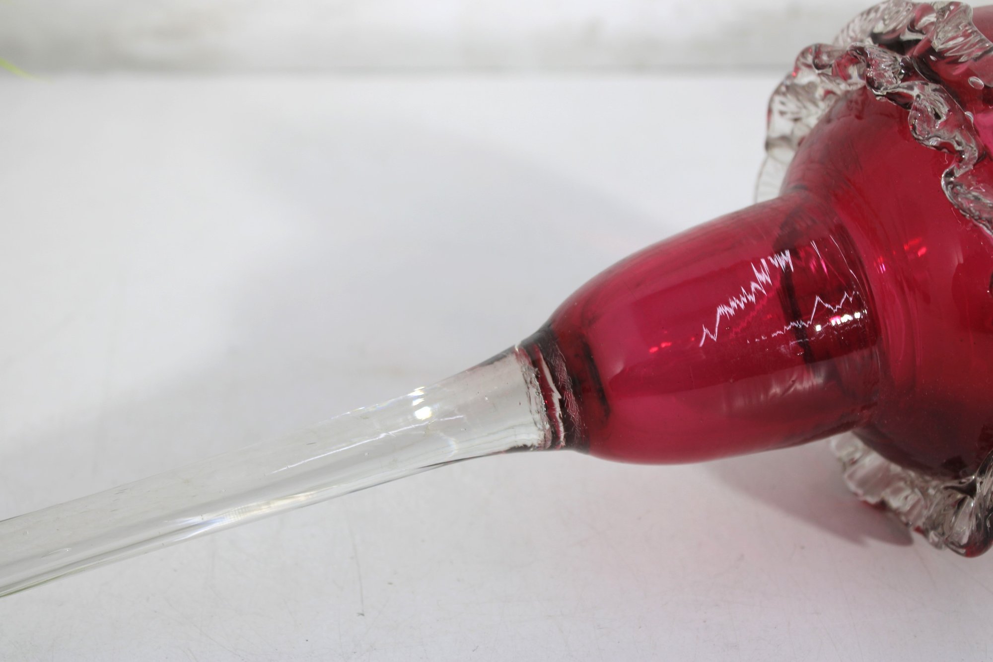 Antique Cranberry Glass Stopper With Clear Stem 14.5 H Victorian Decorative Glass
