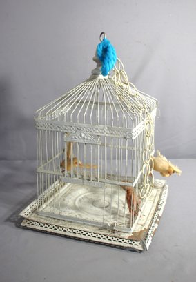 The cage, standing proudly at an impressive height, is painted in a classic white finish, now gracefully worn to reveal a story of time's passage.
