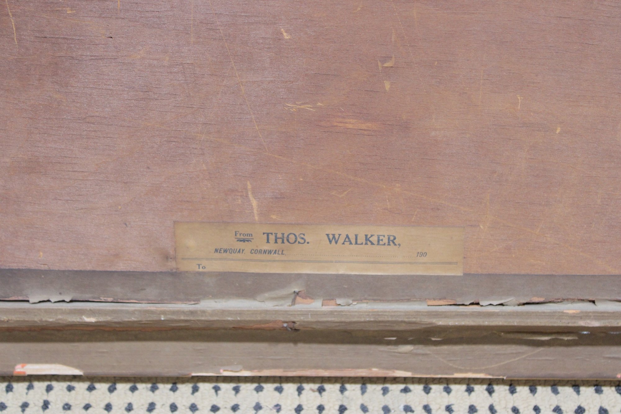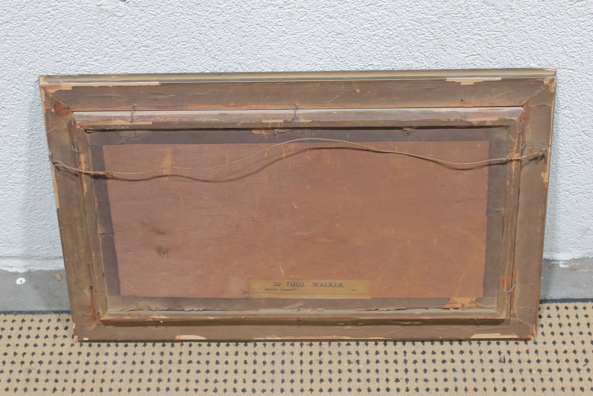 The artwork is housed in its original period gilt wood frame, which complements the composition beautifully and enhances its presentation. The reverse bears a label identifying the artist as Thos. Walker, adding historical interest and collectible appeal.