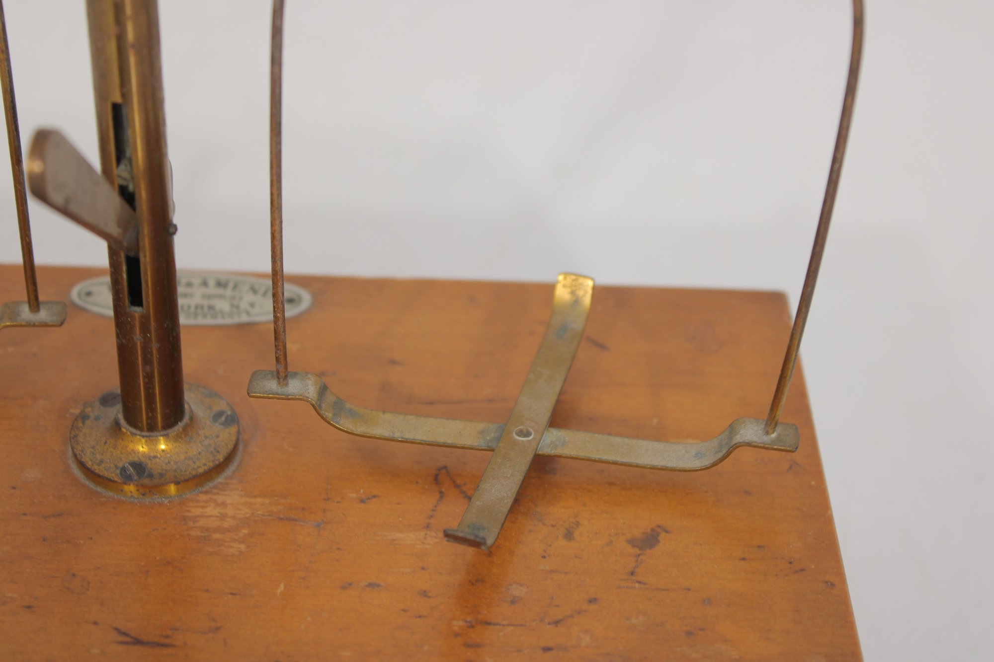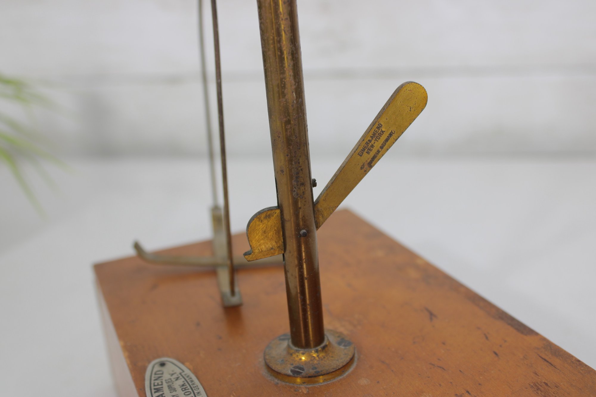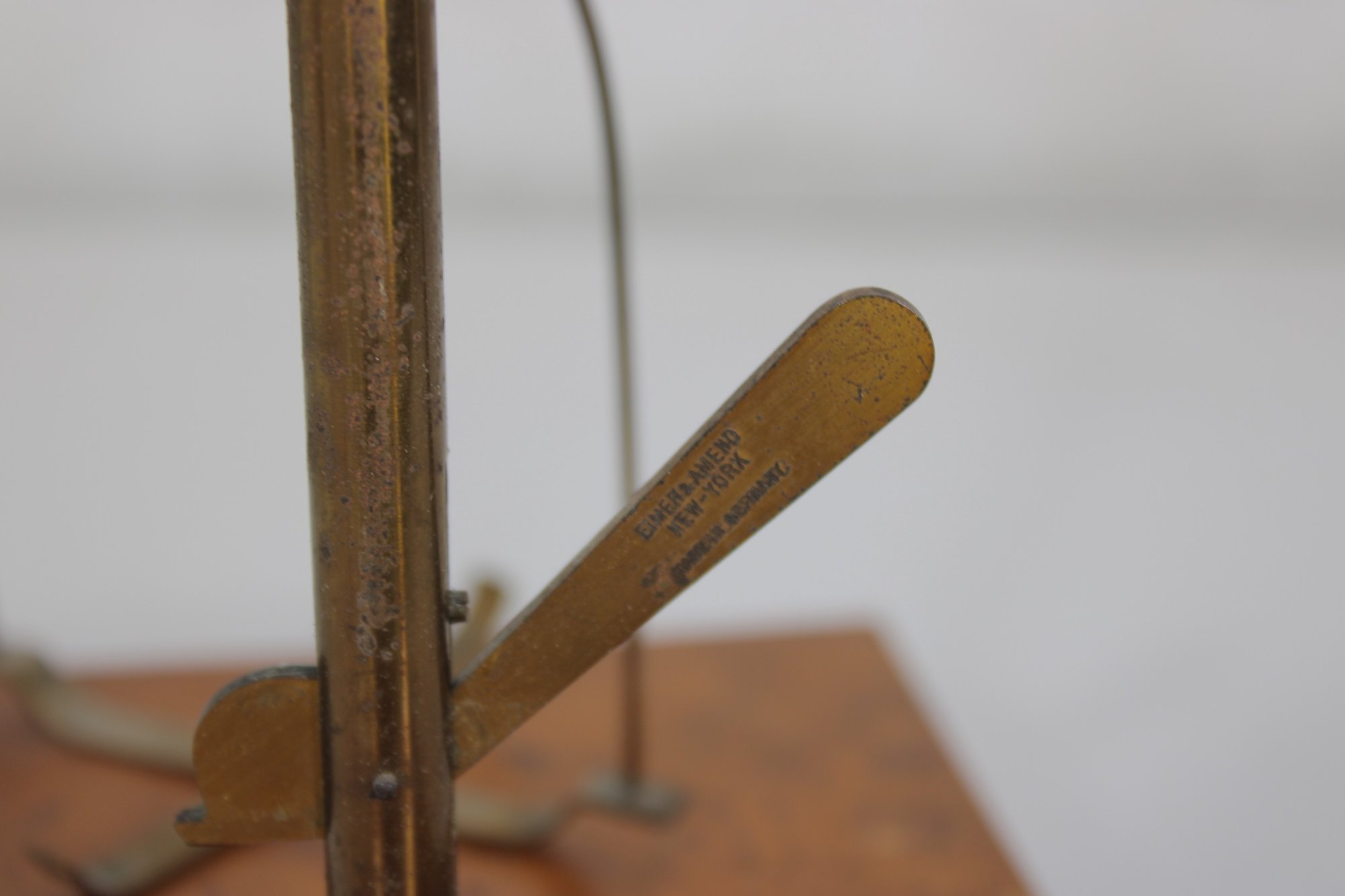 The maker’s label is present on the base: Eimer & Amend – Laboratory Supplies – New York – Made in U.S.A.