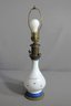 Standing tall with a graceful form, this lamp features a classic blue and white porcelain body, adorned with delicate flower motifs that evoke a sense of nostalgia and charm.