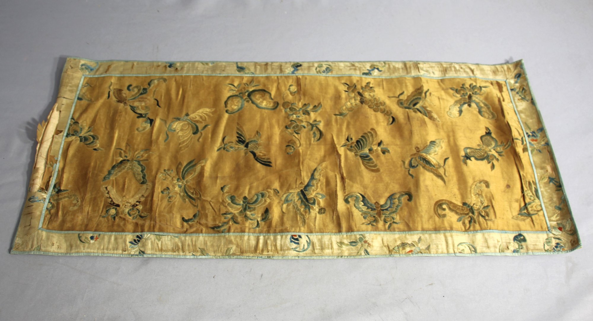 Antique Embroidered Silk Textile with Ornate Patterns,Florals and birds