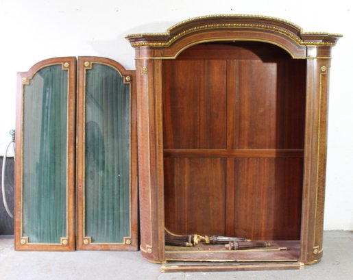 Originally a stunning example of craftsmanship and opulence, this cabinet requires repair to restore it to its former glory. Several pieces, including interior columns and moldings, have come loose or are damaged, and the cabinet's structure needs some restoration work.