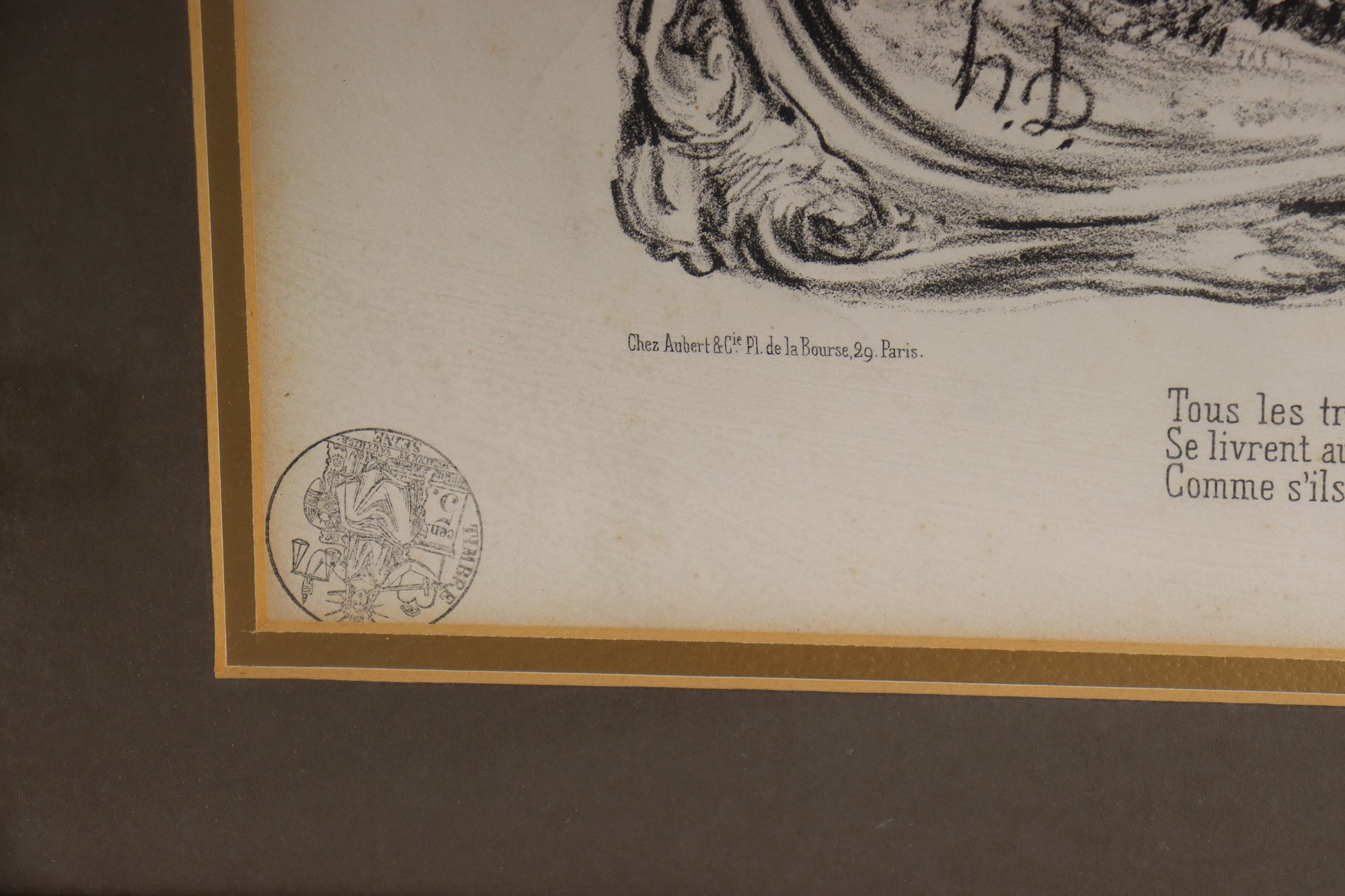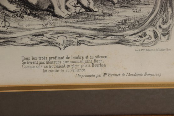 Printed by French publisher (noted in text area) and stamped lower left. A charming historical decorative piece with great antique character and French political / parliamentary humor of the time period.