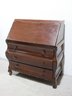 The drop-front writing surface opens to reveal a well-organized interior with multiple small drawers, compartments, and cubbies for storing stationery and essentials. Below, the three spacious drawers provide ample storage while sitting on ornate cabriole legs with carved detailing.