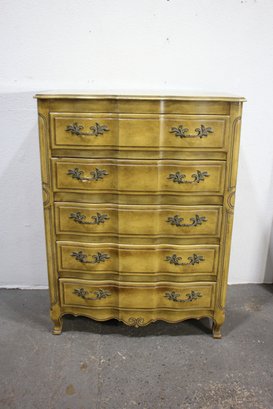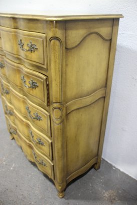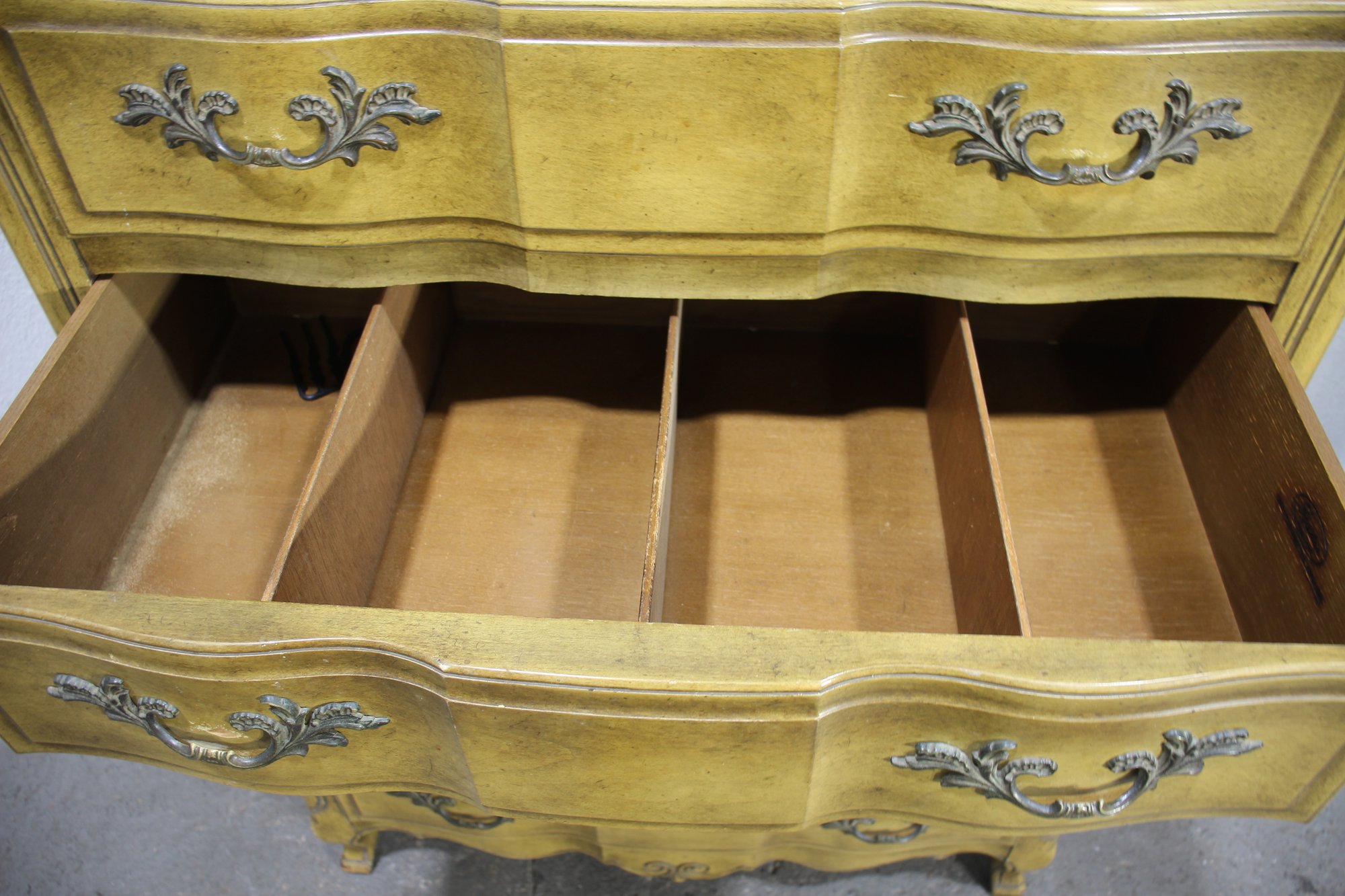 Antique French Provincial Style Tall Chest by Rader New York. Beautiful 5-Drawer dresser...top 3 drawers are divided into smaller sections for better organization.
