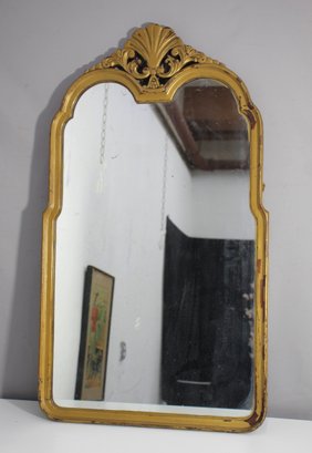 This stunning antique French wall mirror exudes elegance and charm, perfect for adding a touch of vintage sophistication to any space. The mirror features a beautifully gilded frame with a warm patina, and a decorative crest at the top with intricate scrollwork and a shell motif, characteristic of classic French design.