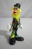 a vibrant and playful representation of Venetian glass artistry. Standing at an impressive height, this figure showcases the exquisite skill of Murano's master glassblowers with its detailed and colorful design. The clown, donned in a classic outfit complete with a dapper black hat and a multicolored suit, exhibits a cheerful expression and dynamic posture, bringing a touch of humor and art to any space. Its luminous glass composition catches the light beautifully, making it a delightful centerpiece or a unique addition to any collection of fine art or Venetian memorabilia.