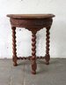 The table stands on four sturdy barley twist legs, connected by carved stretchers, offering both stability and a distinctive look. Some signs of wear are present on the top surface, consistent with age and use, adding to its character and authenticity.