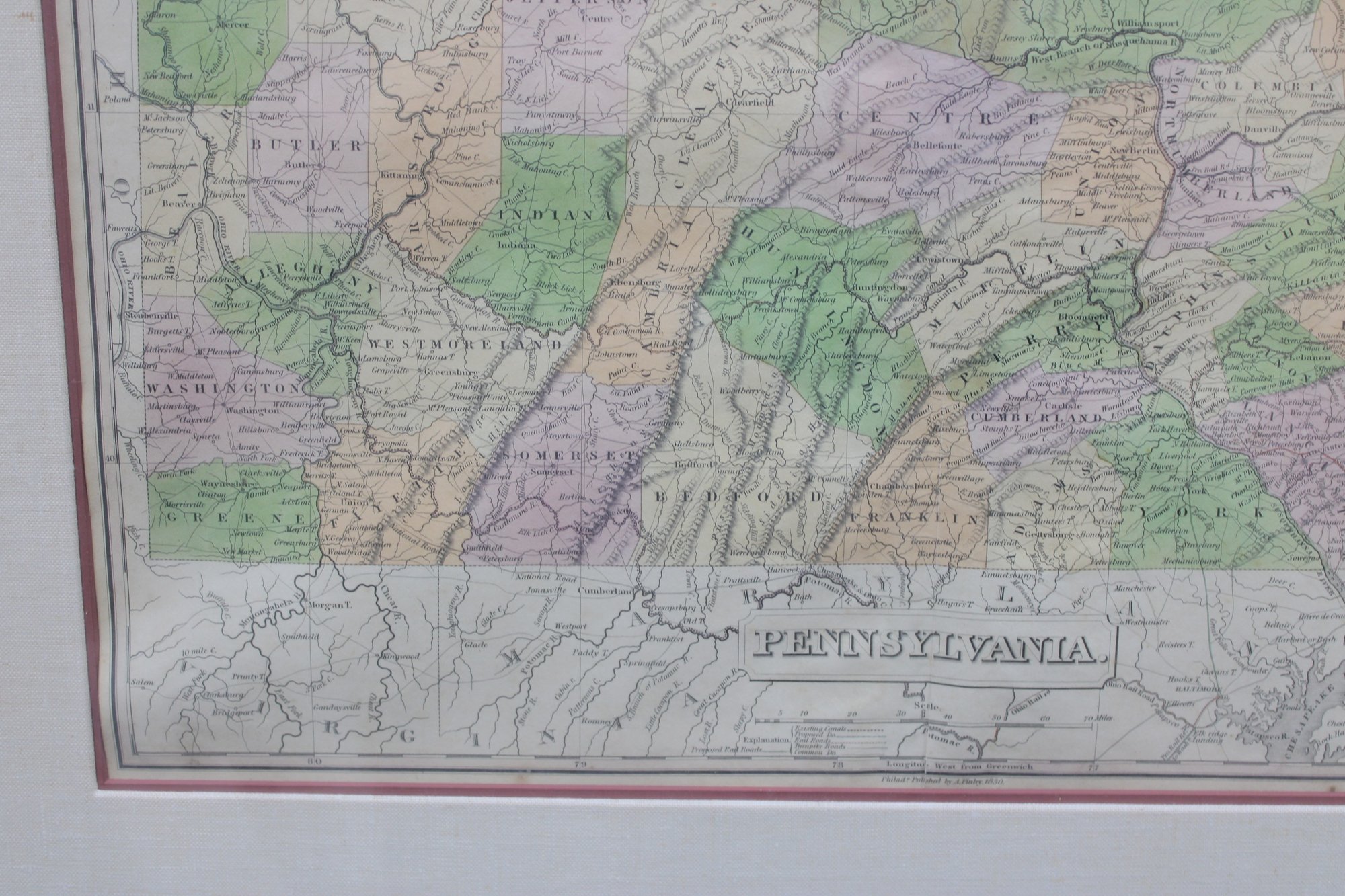 This antique hand-colored map depicts the state of Pennsylvania in finely detailed county divisions, rendered in soft pastel tones typical of late 19th-century American atlas maps. Roads, rivers, towns, and regional boundaries are carefully delineated, offering both historical interest and strong decorative appeal.