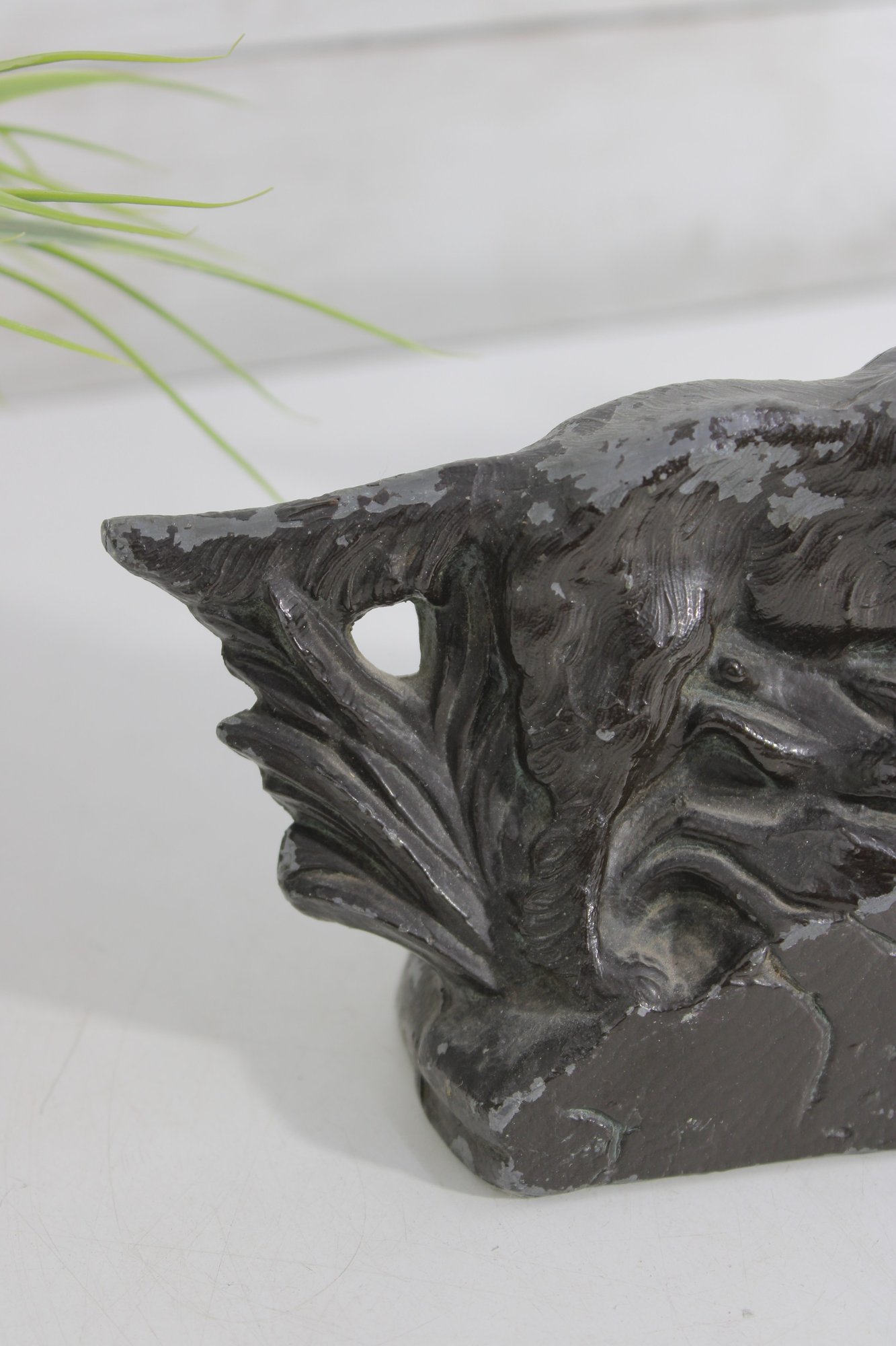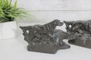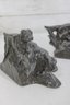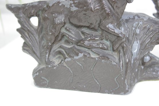 Crafted from cast metal with a dark aged finish, these bookends have developed a desirable patina over time, adding to their vintage character. They are both decorative and functional, ideal for supporting books while enhancing a study, library, or office décor.