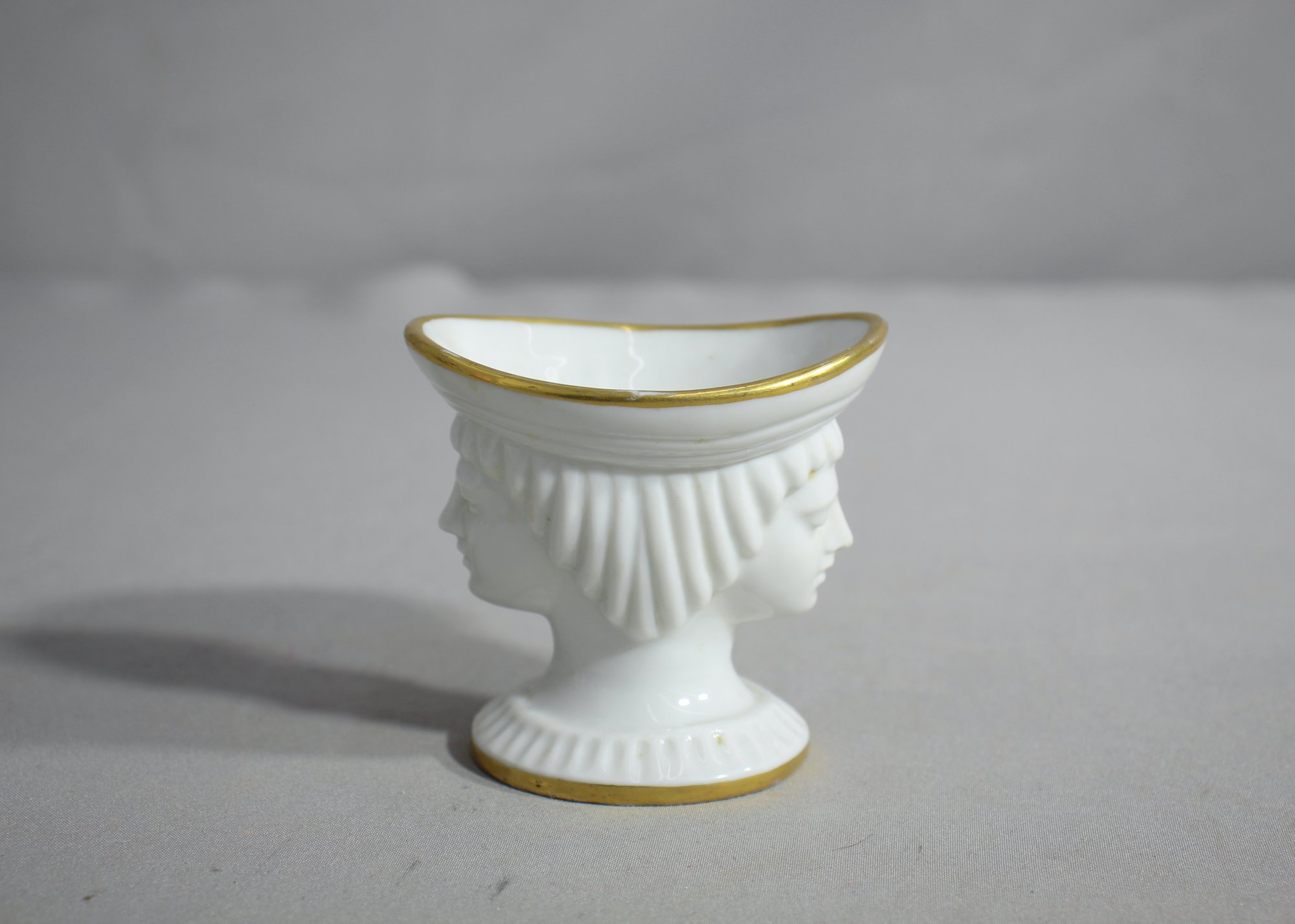 Antique Italian Miniature White Two Faces Porcelain With Tray Gold Trim 3" Tall
