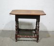 with its smooth finish and classic shape. It stands on elegantly turned legs connected by stretchers, providing both stability and a decorative touch. The lower cross stretcher adds to the antique charm and structural integrity of the piece.