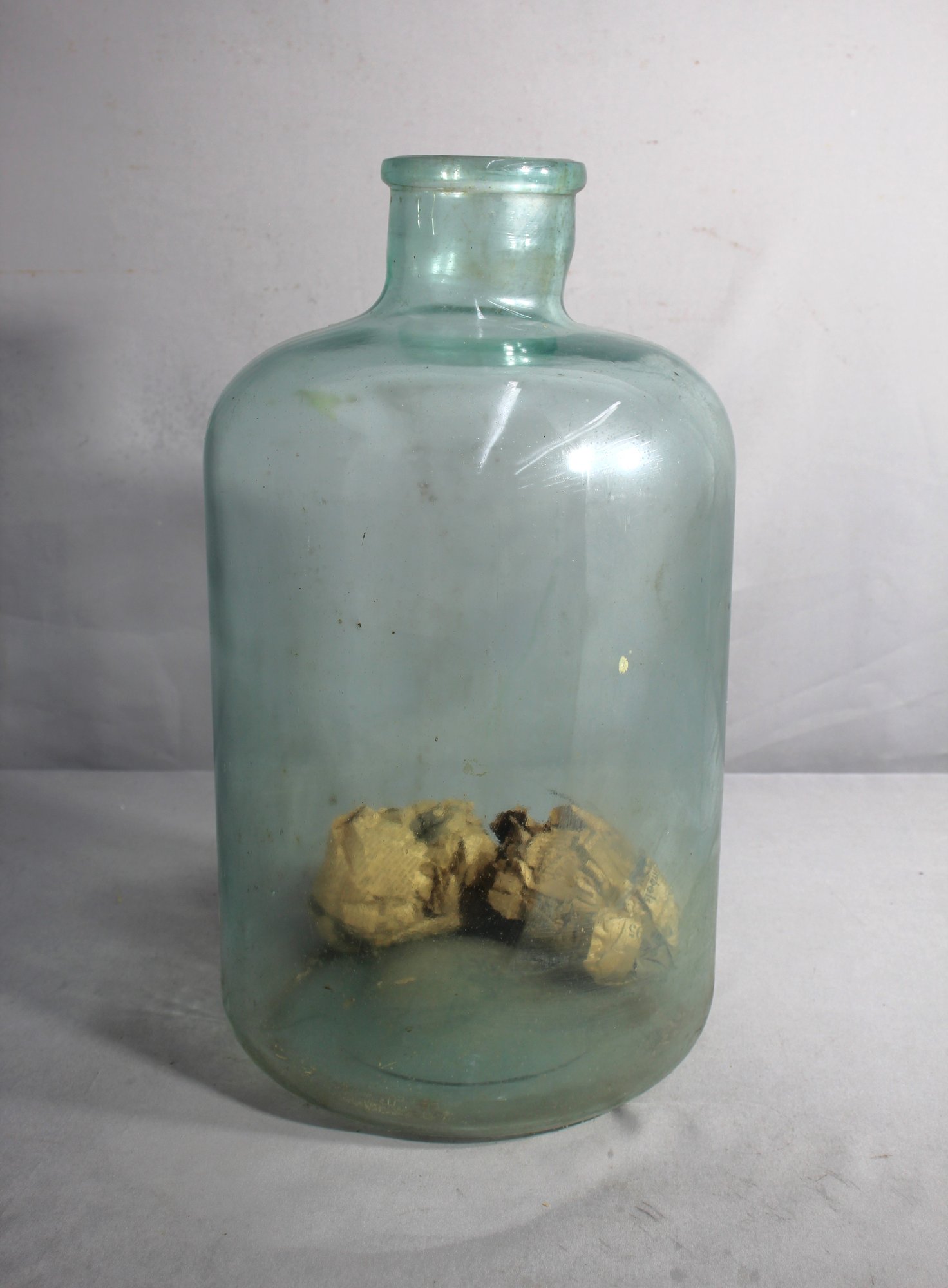 exquisite antique large glass demijohn bottle, a treasure from the past that is as versatile as it is full of character. Originating from an era when craftsmanship was paramount, this piece served as a water or wine carrier and storage vessel, a common household item turned collectible.