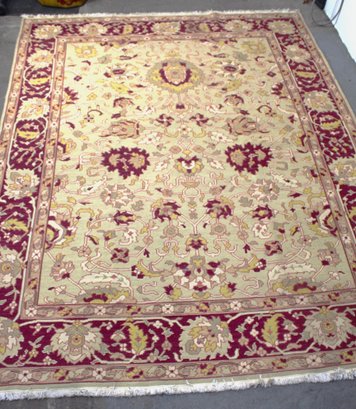 This elegant Antique Legends Karastan rug, measuring an impressive 146" x 104.5", is a masterpiece of traditional craftsmanship and design. The rug features a striking blend of rich burgundy, beige, and gold tones, creating an intricate floral and vine pattern that exudes sophistication and timeless beauty.