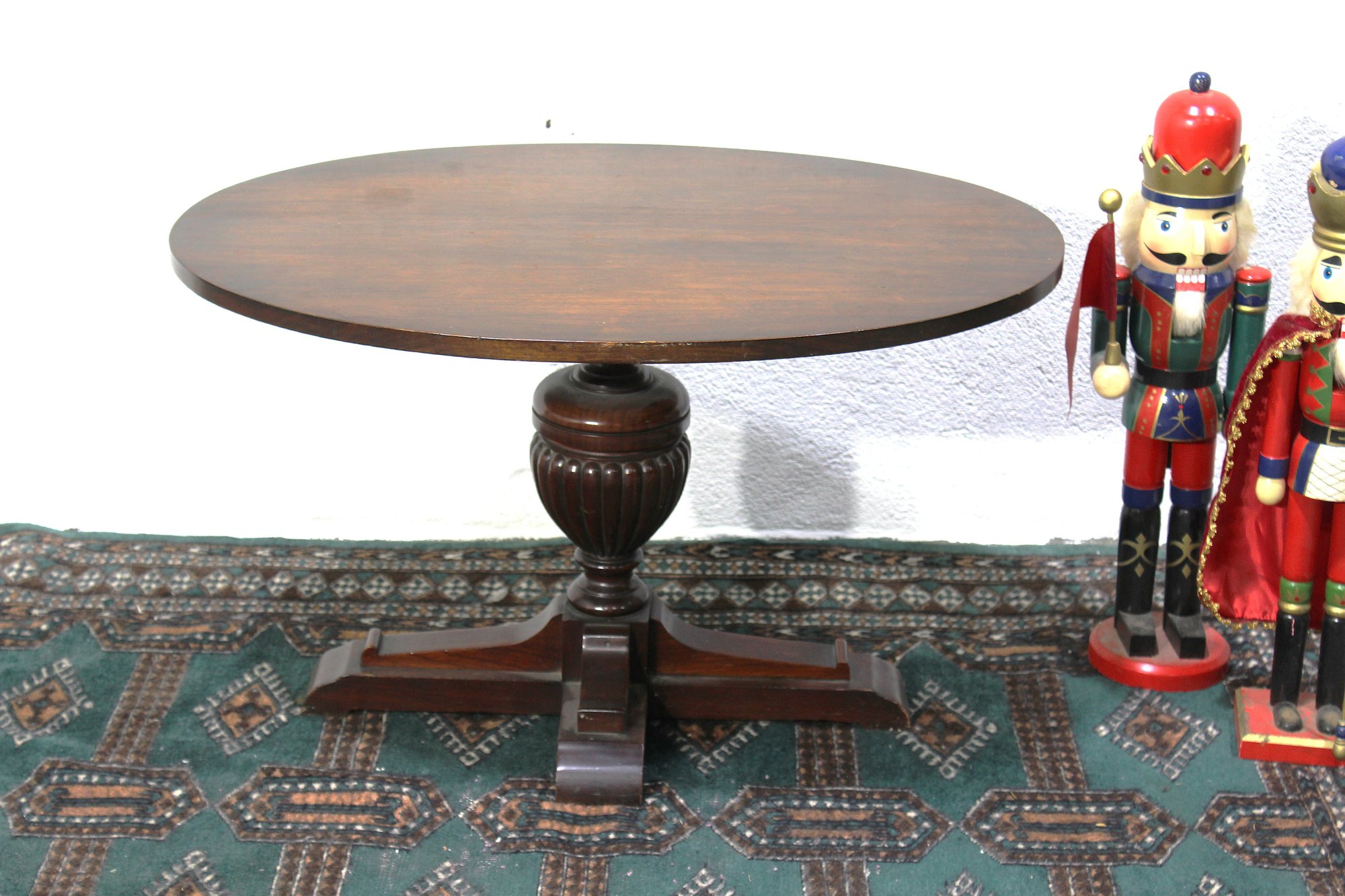 A stunning antique mahogany round pedestal table featuring a beautifully turned and fluted central column resting on a tri-footed base. This elegant piece is a testament to classic craftsmanship and design, making it a perfect addition to any traditional or vintage-inspired interior.