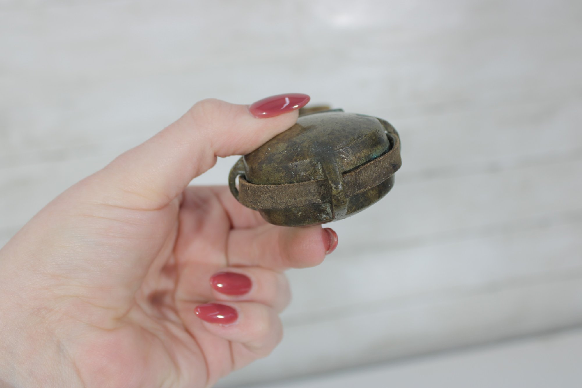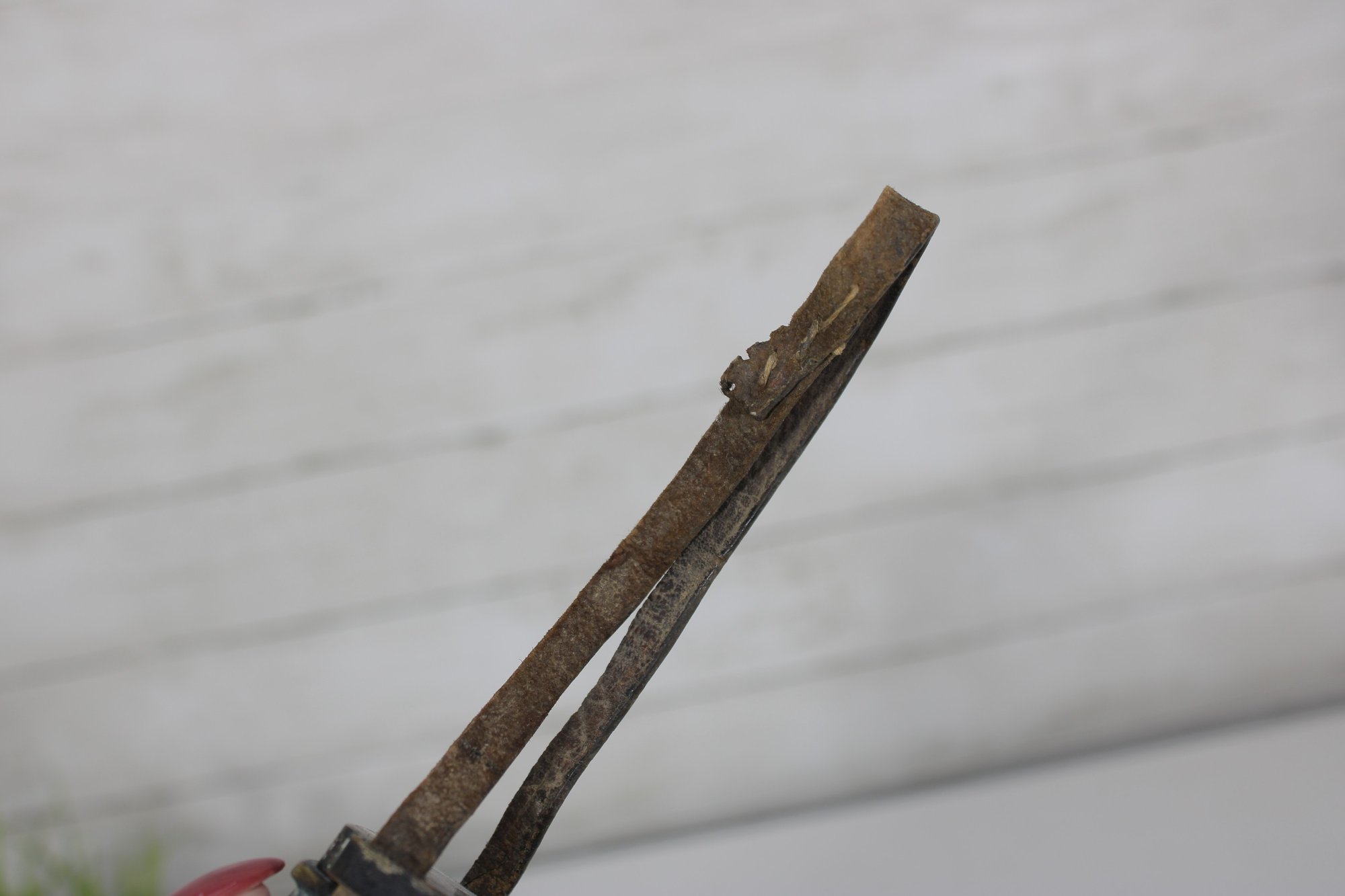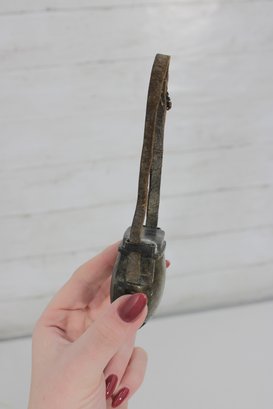The metal body shows natural age darkening and wear, giving it authentic antique character.