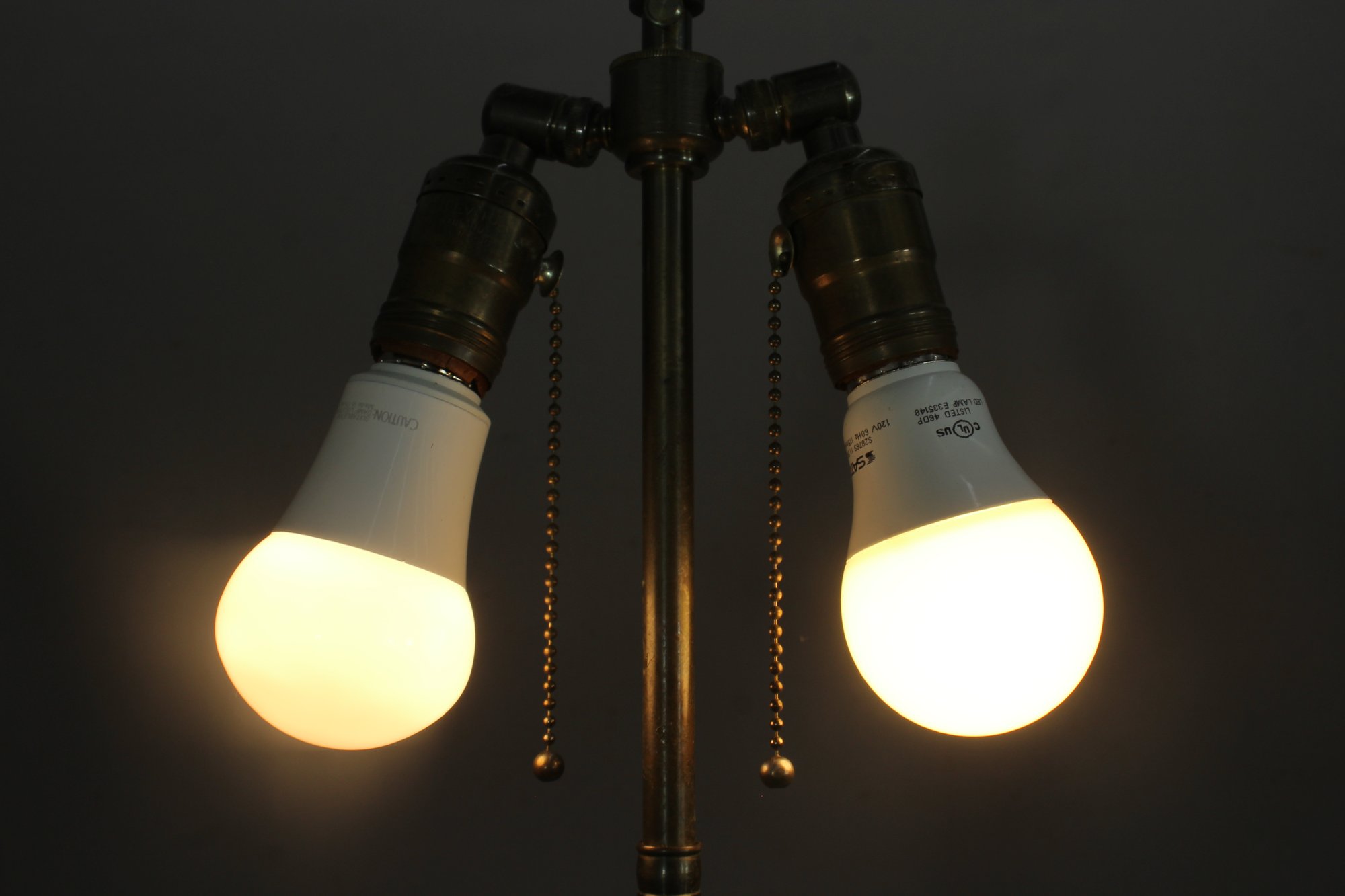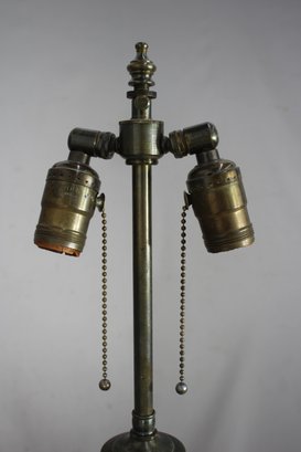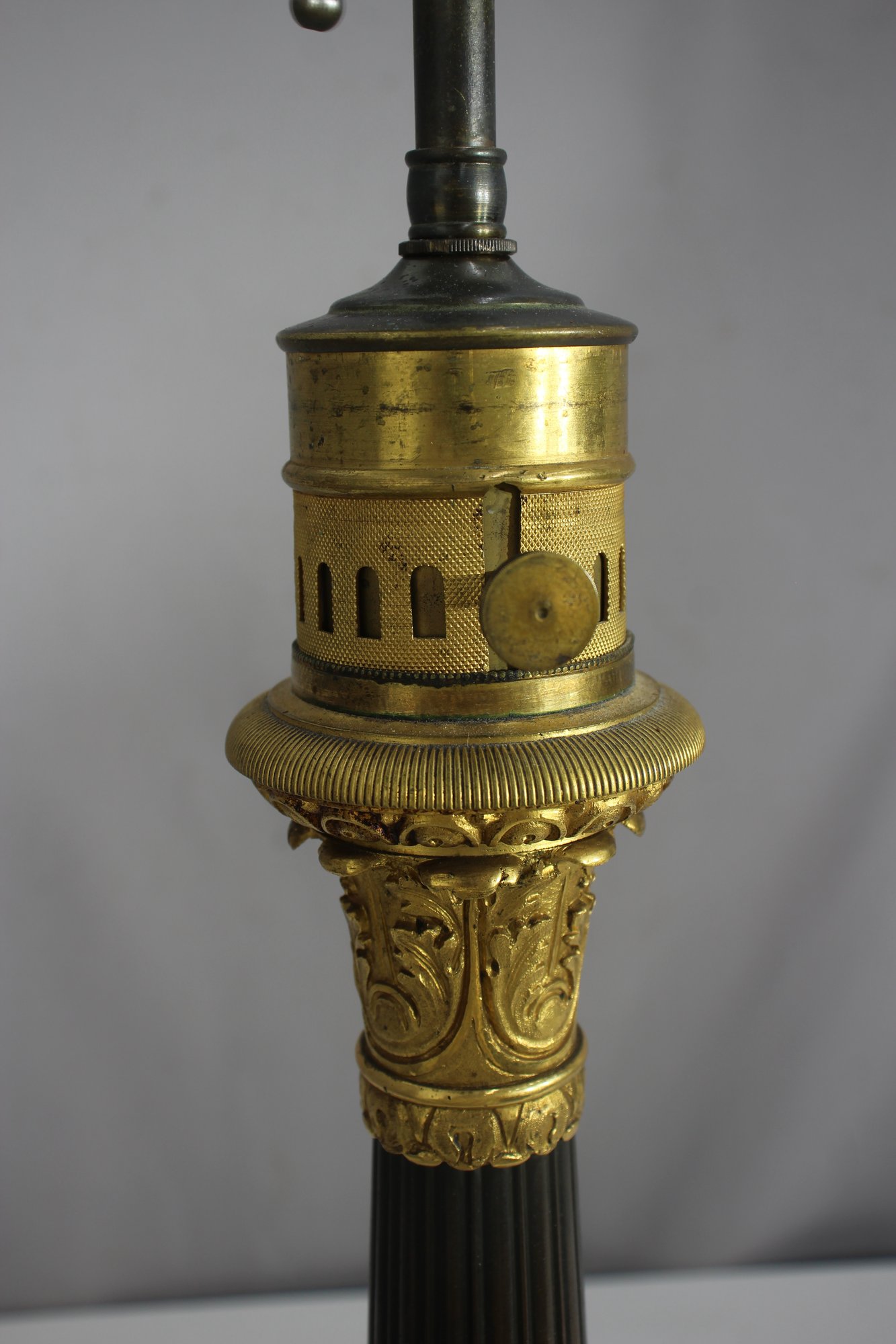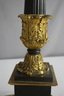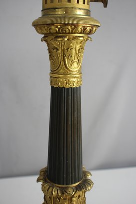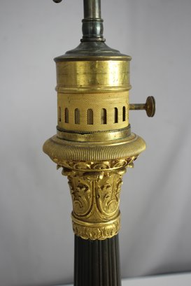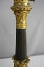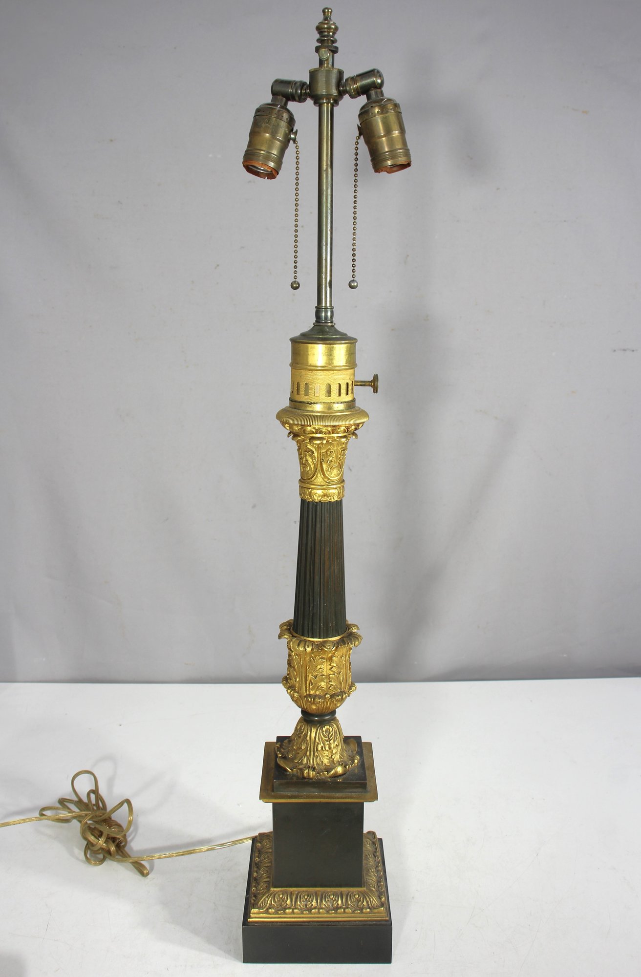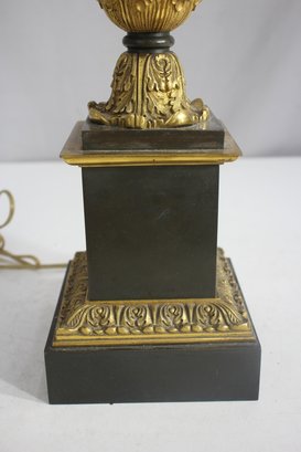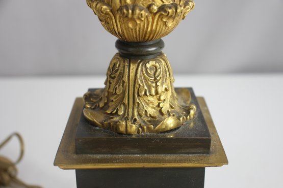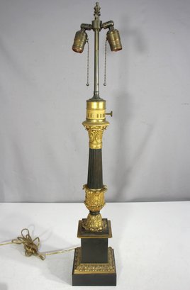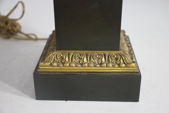 Antique Neoclassical Brass & Black Column Table Lamp – Ornate Dual Socket