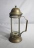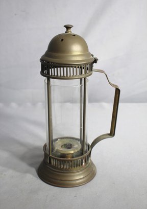 The clear glass cylinder serves as a wind guard, ensuring that the candle's flame burns steady and bright. This design not only adds to the lamp's functionality but also to its aesthetic appeal, making it a conversation piece as well as a source of light.
