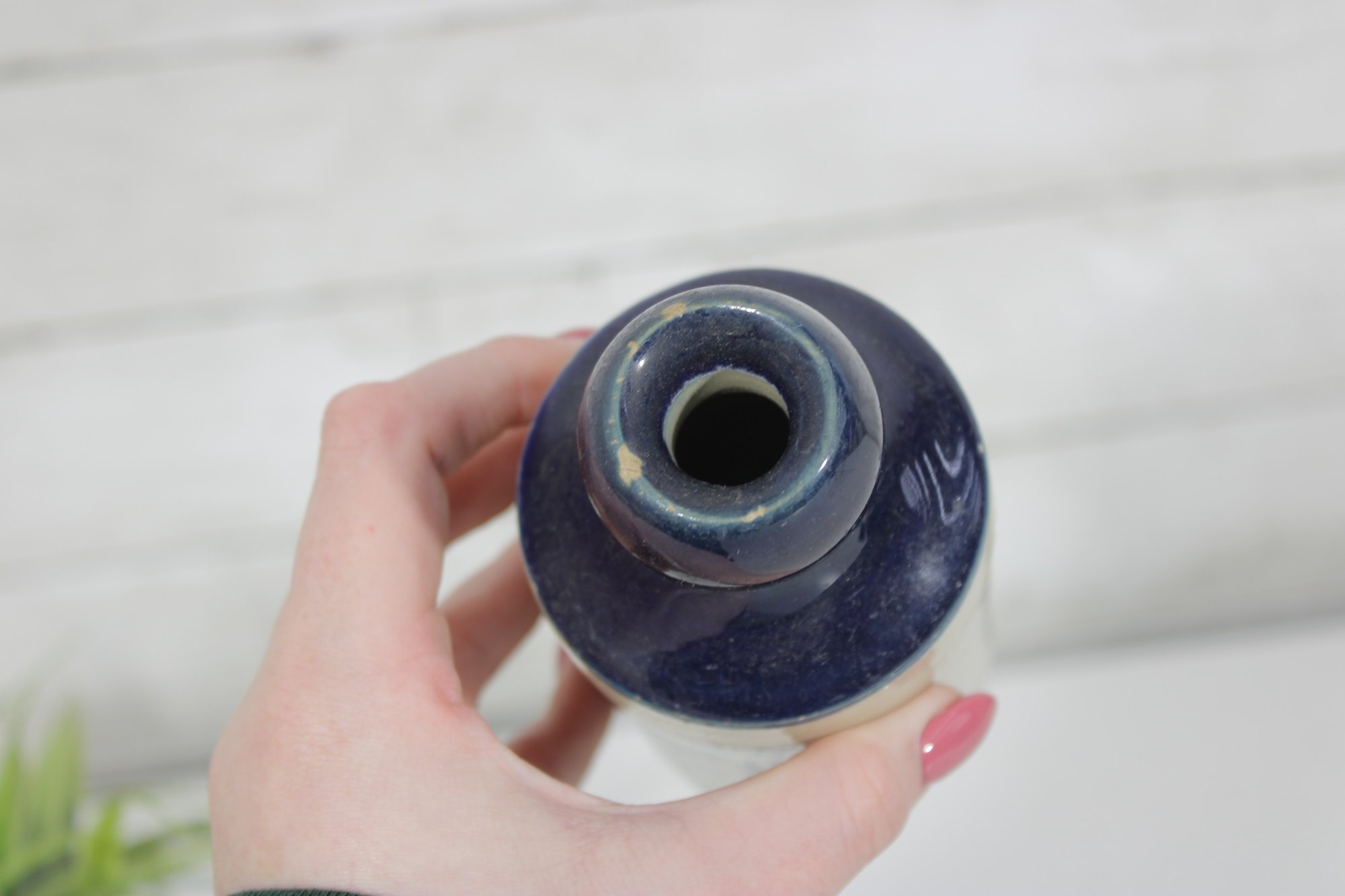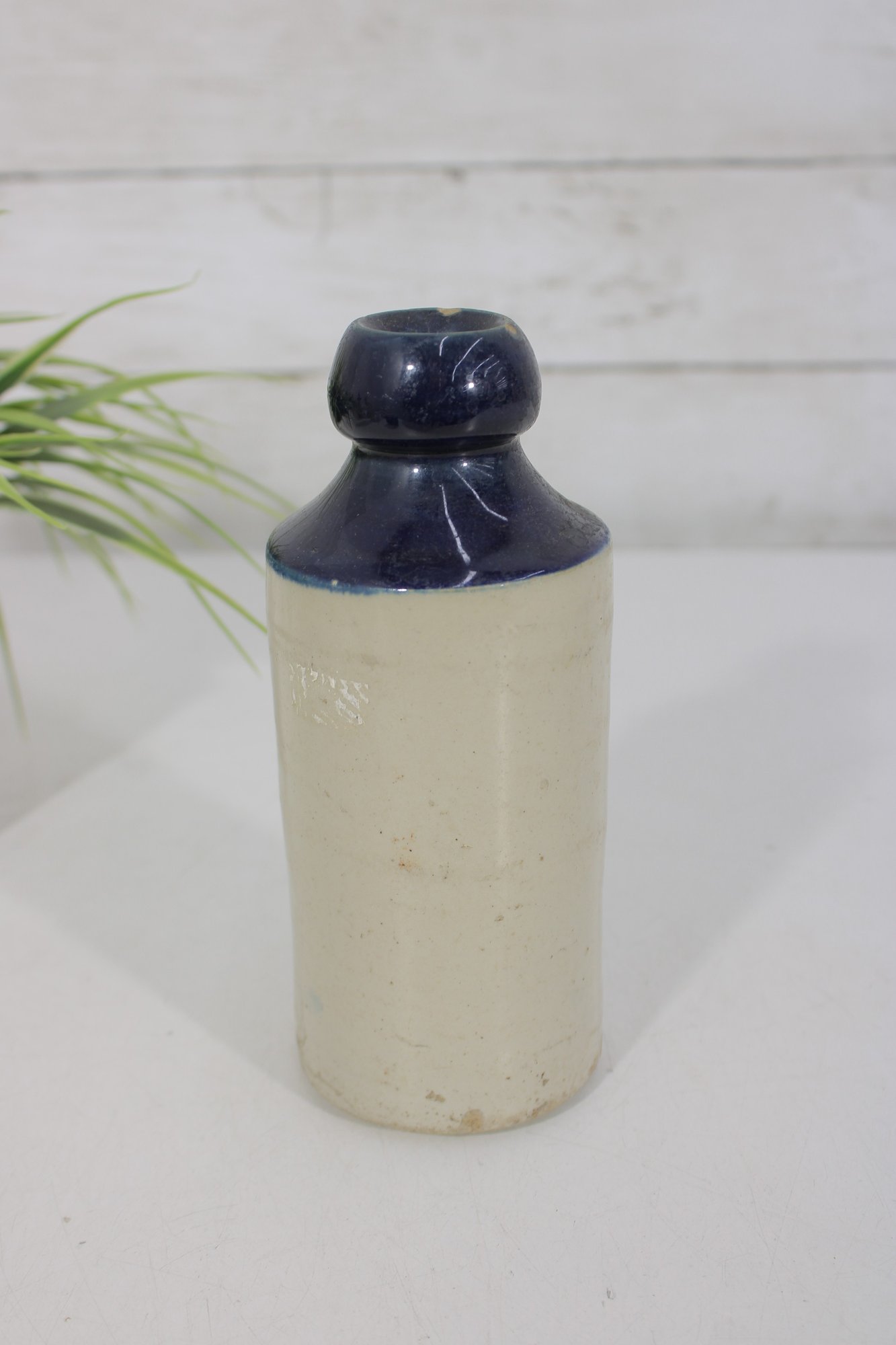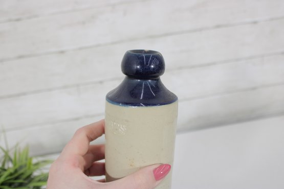 an antique stoneware brewery bottle from Booth & Randall Brewery of Reedsburg, Wisconsin. This classic advertising bottle features a salt-glazed stoneware body with a dark cobalt blue glazed top, typical of late 19th to early 20th century brewery containers.