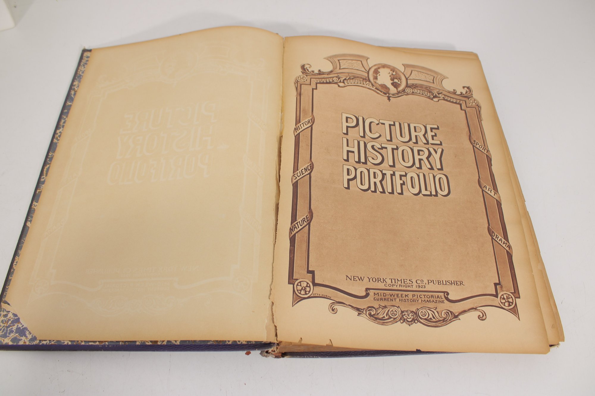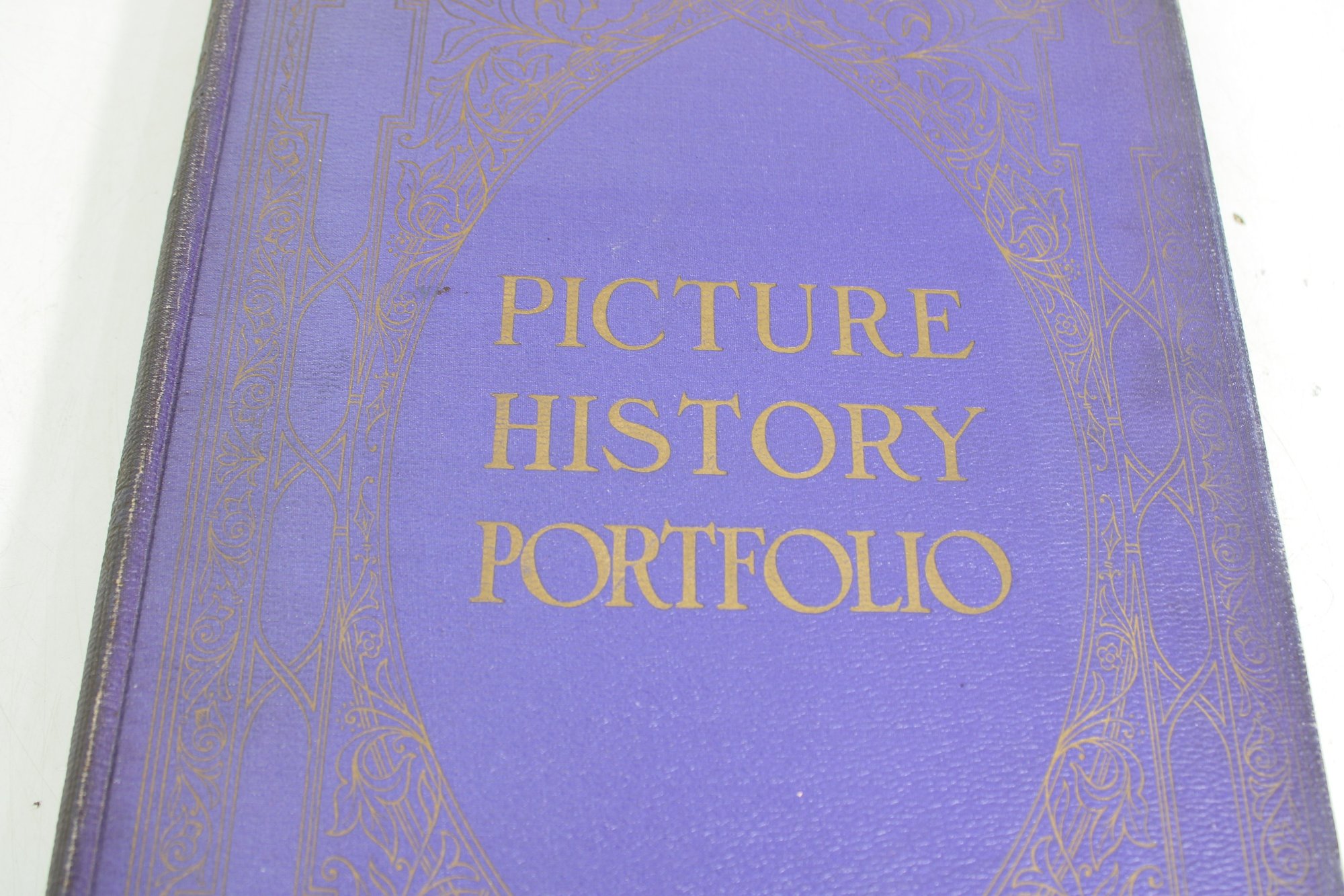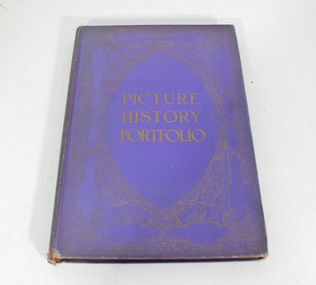 Antique Picture History Portfolio book featuring a rich collection of historical images and illustrations. This large-format volume includes sepia-toned photographs and prints depicting notable people, places, and events, offering a fascinating visual journey through history.
