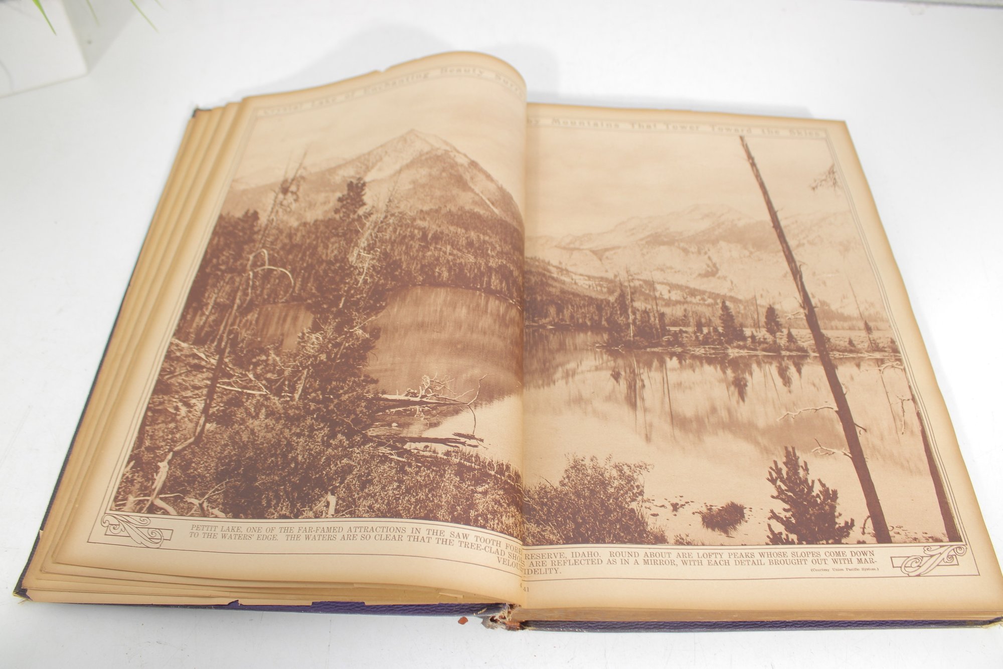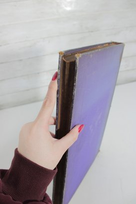 The book is bound in a decorative purple cover with ornate gold-tone lettering and design. Inside, the pages are filled with detailed images accompanied by descriptive captions, making it both educational and visually engaging.