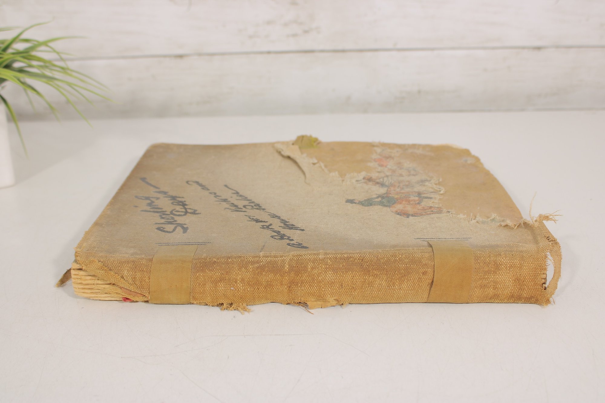 The cover shows significant age and wear, giving the book a well-loved antique character. Despite the wear, the interior pages still display the charming artwork that makes this book desirable for collectors.