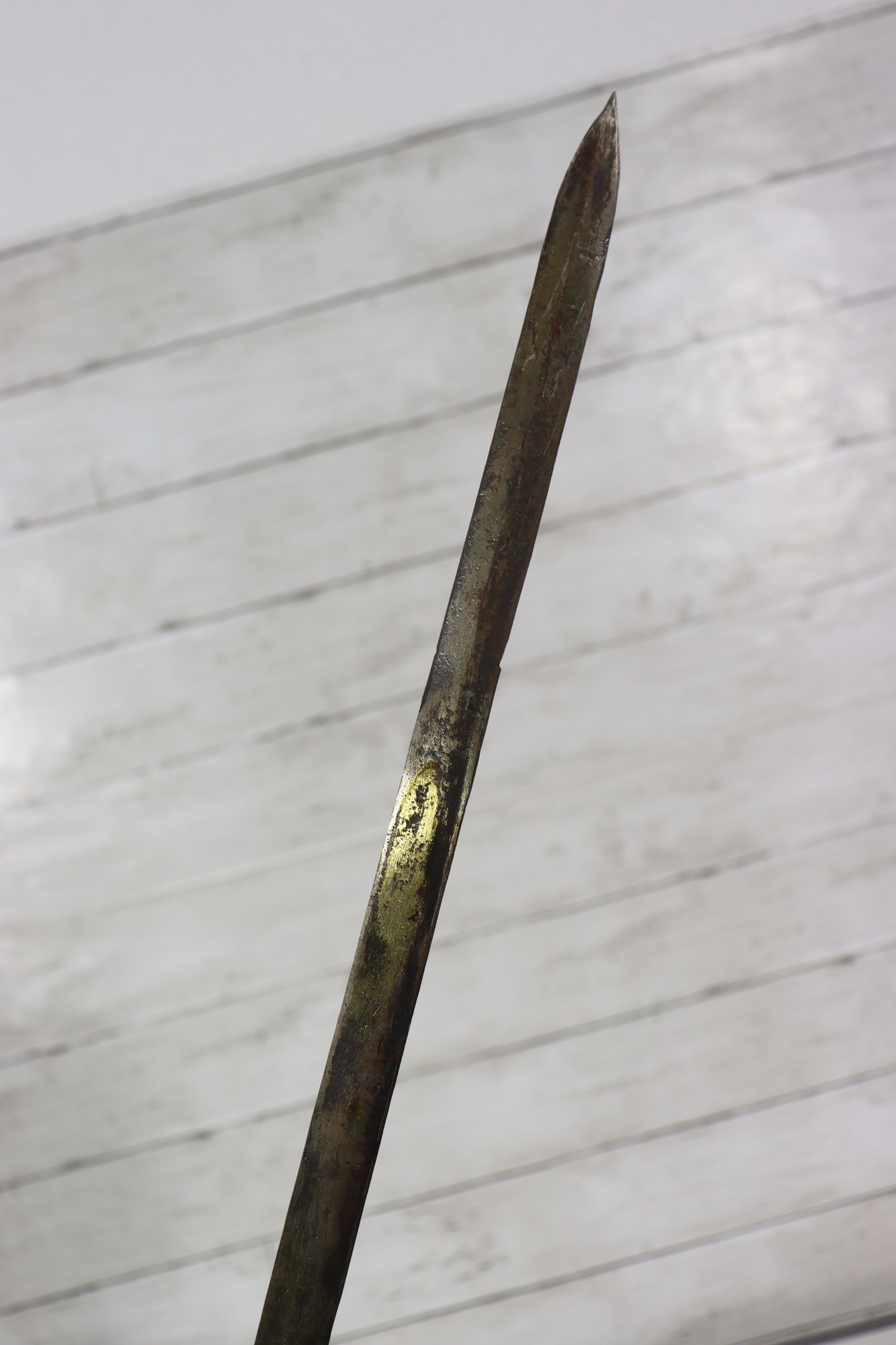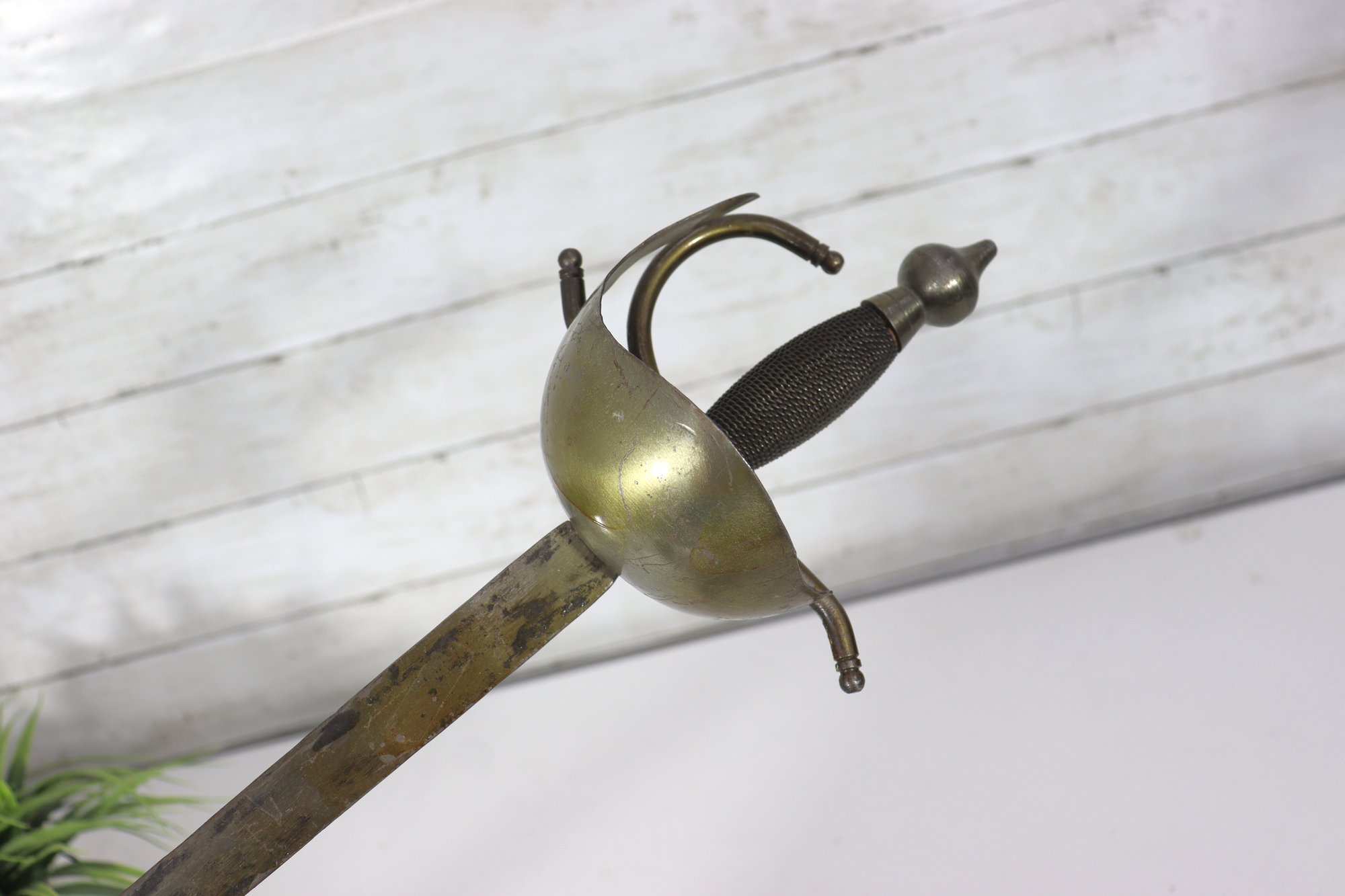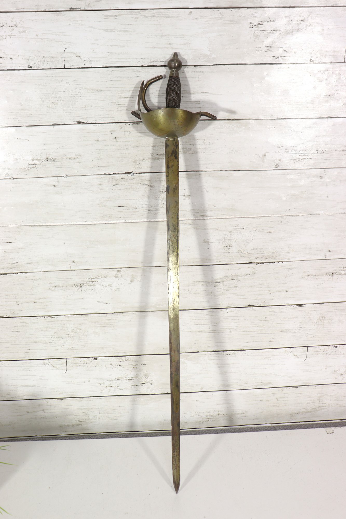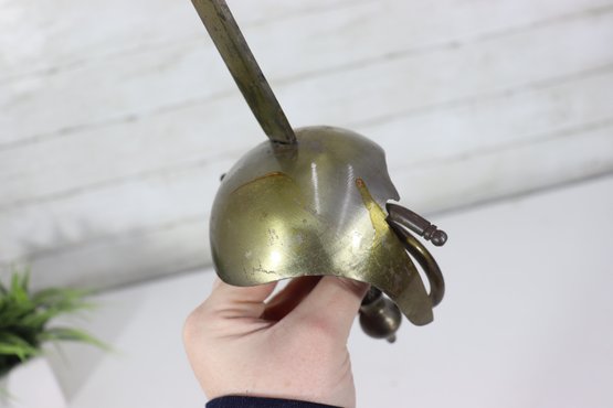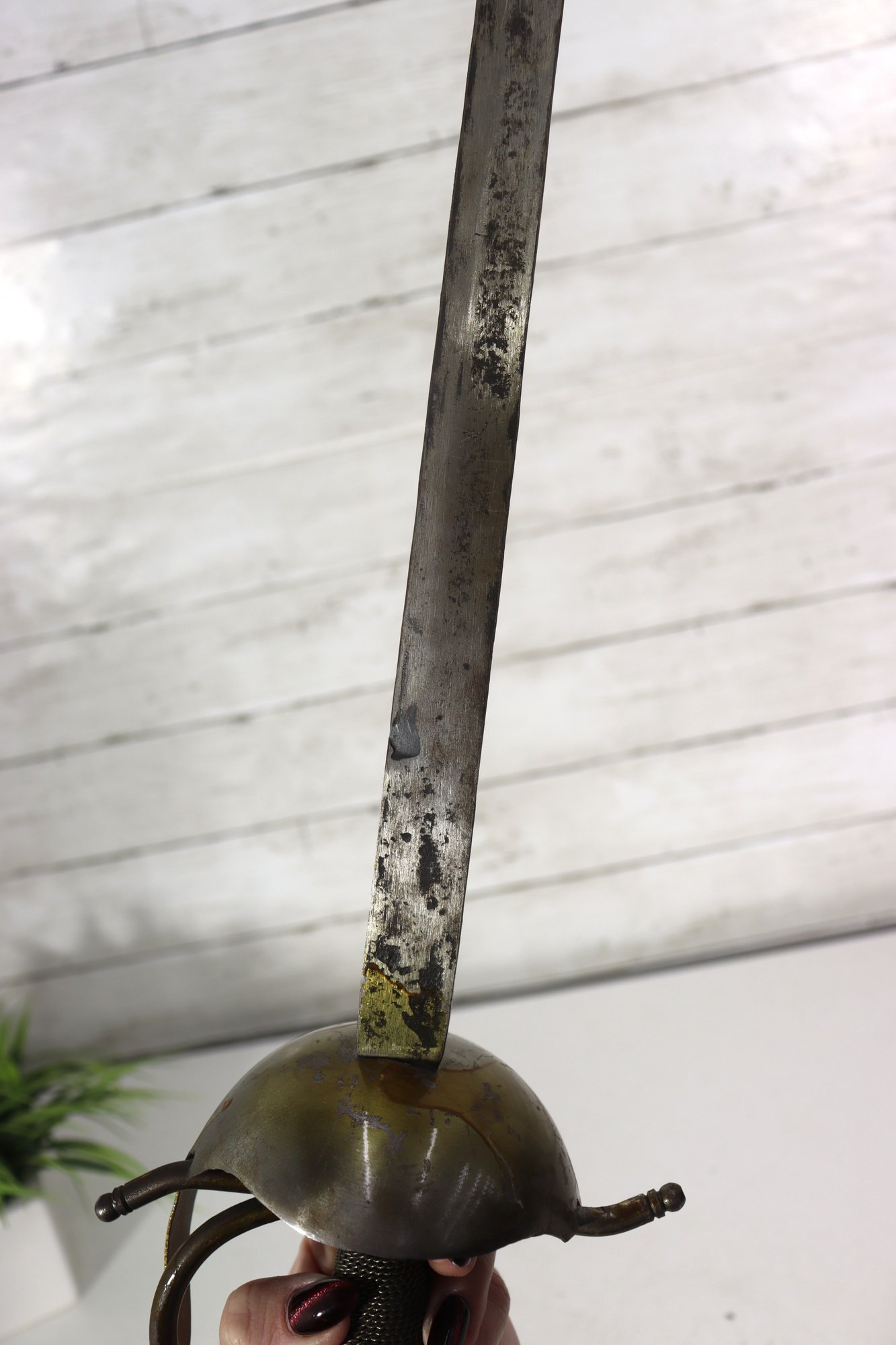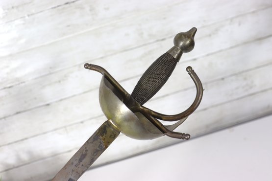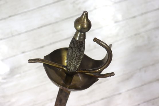 The slender steel blade shows age-related wear and patina, adding to its authentic vintage look. This sword is best suited for display, décor, or collection purposes rather than functional use.
