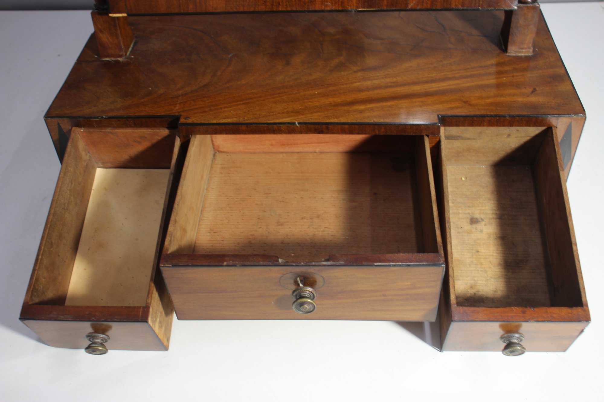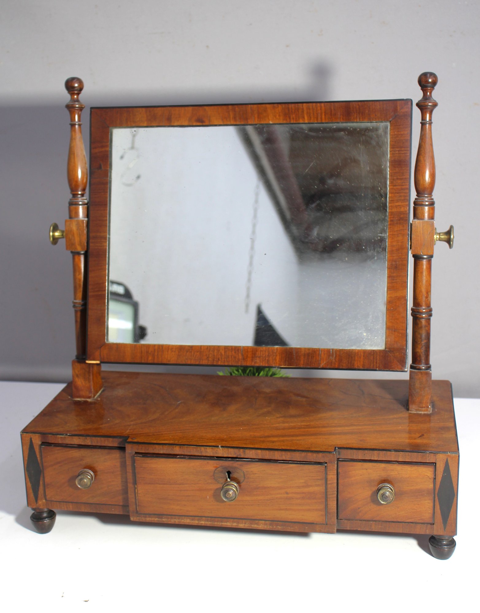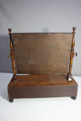 Antique Tilt Mirror Vanity with Three Drawers - Mahogany Finish.