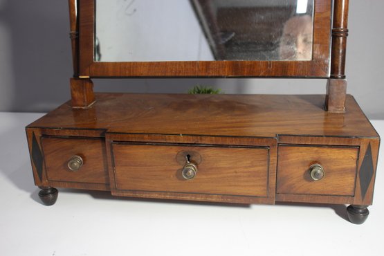 This charming antique tilt mirror vanity combines functionality and elegance, making it a perfect addition to your dressing area or antique collection.