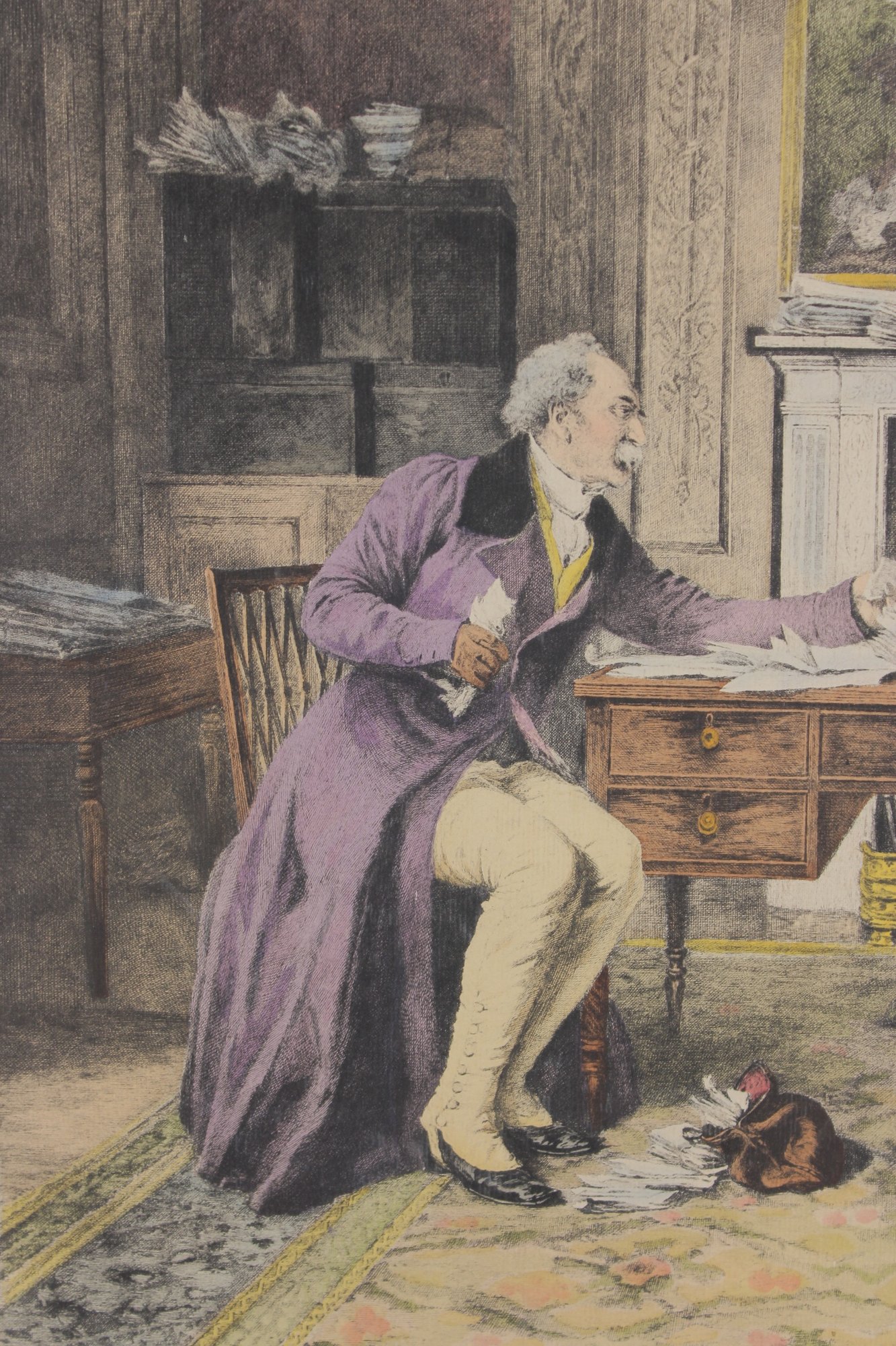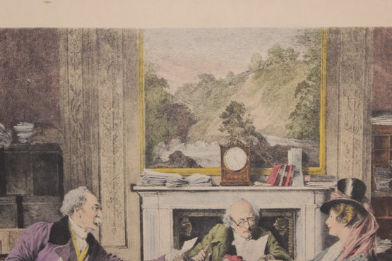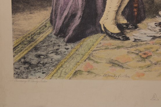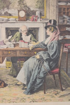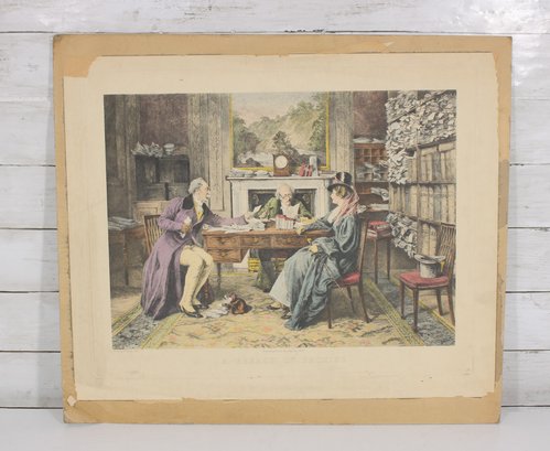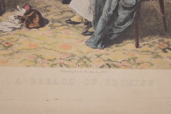 Antique Victorian Print A "Breach Of Promise" Interior Scene 20.5" X 23.5"