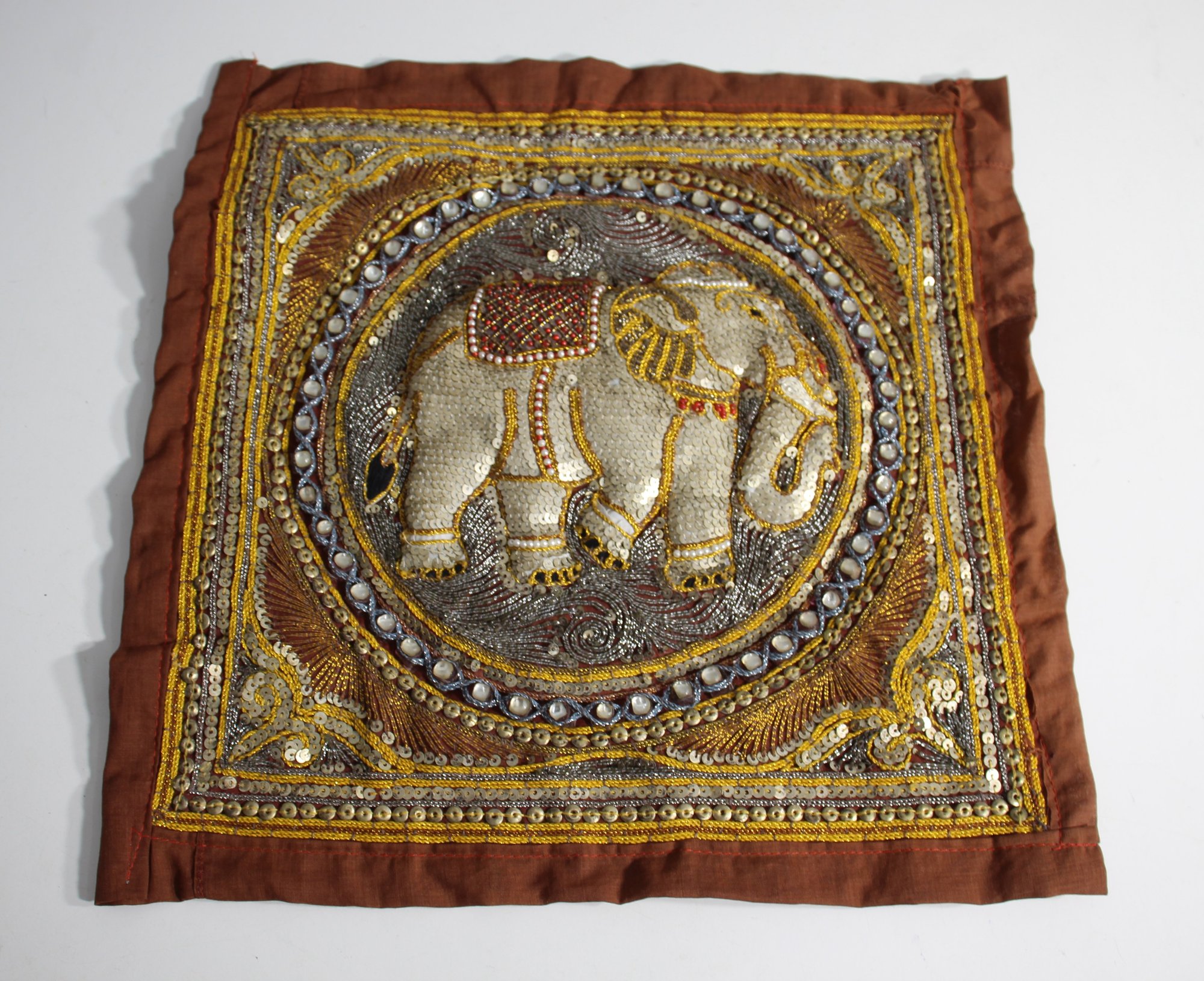 ANTIQUE VINTAGE EMBOSSED EMBROIDERY ELEPHANT ART TEXTILE 14 X 15"