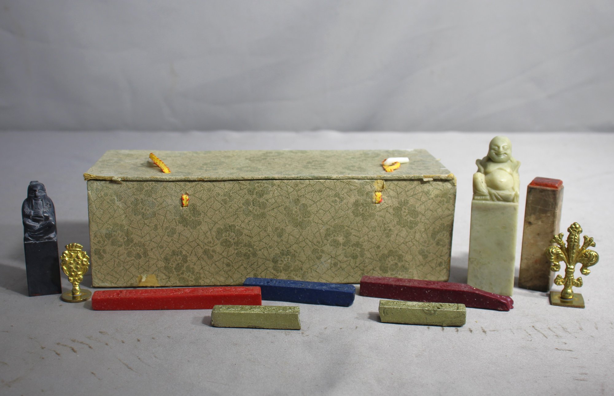 Antique Wax Seal Set With Carved Stamps And Decorative Box