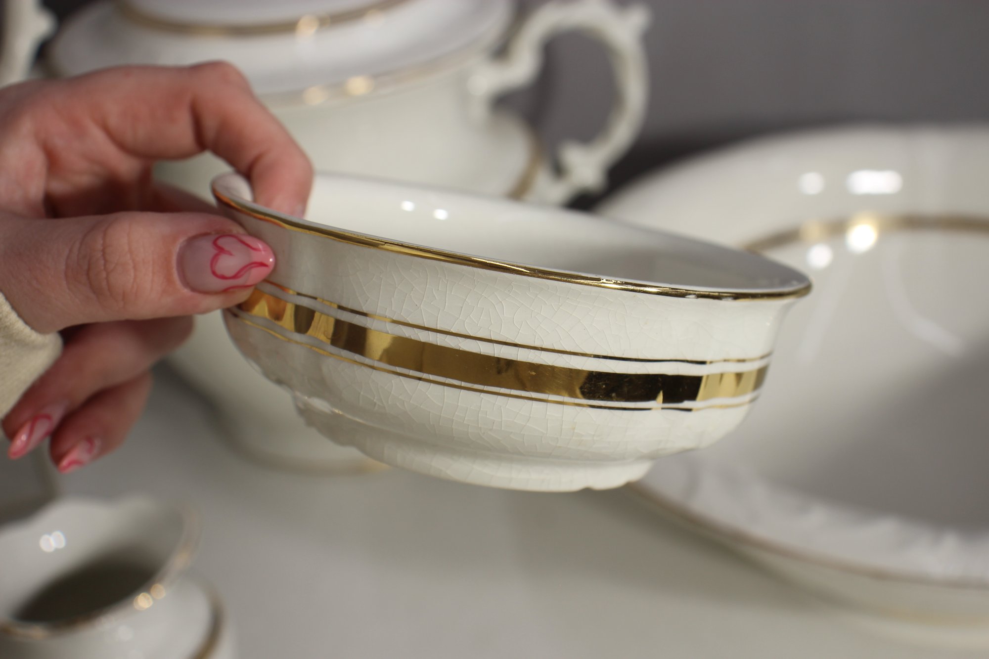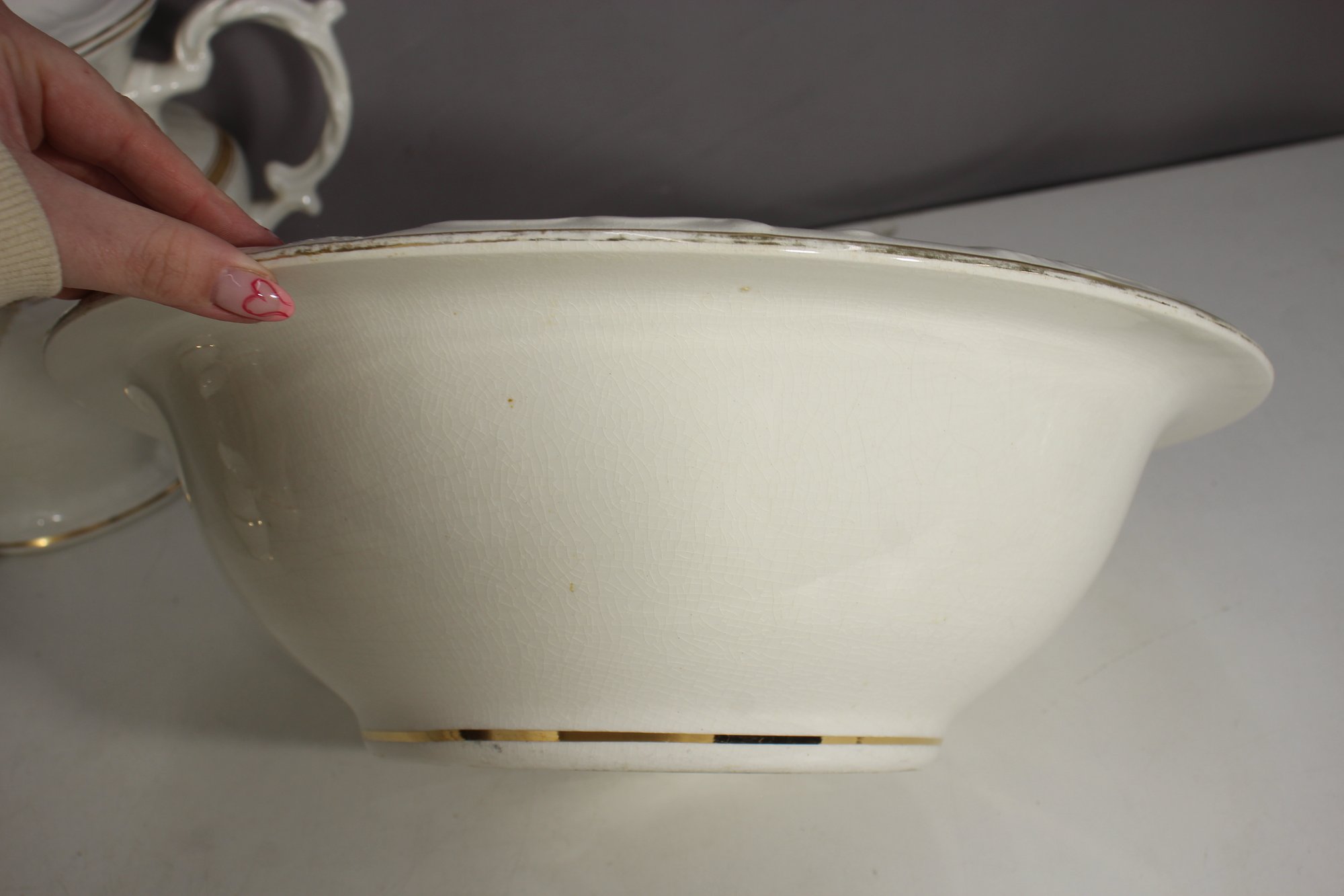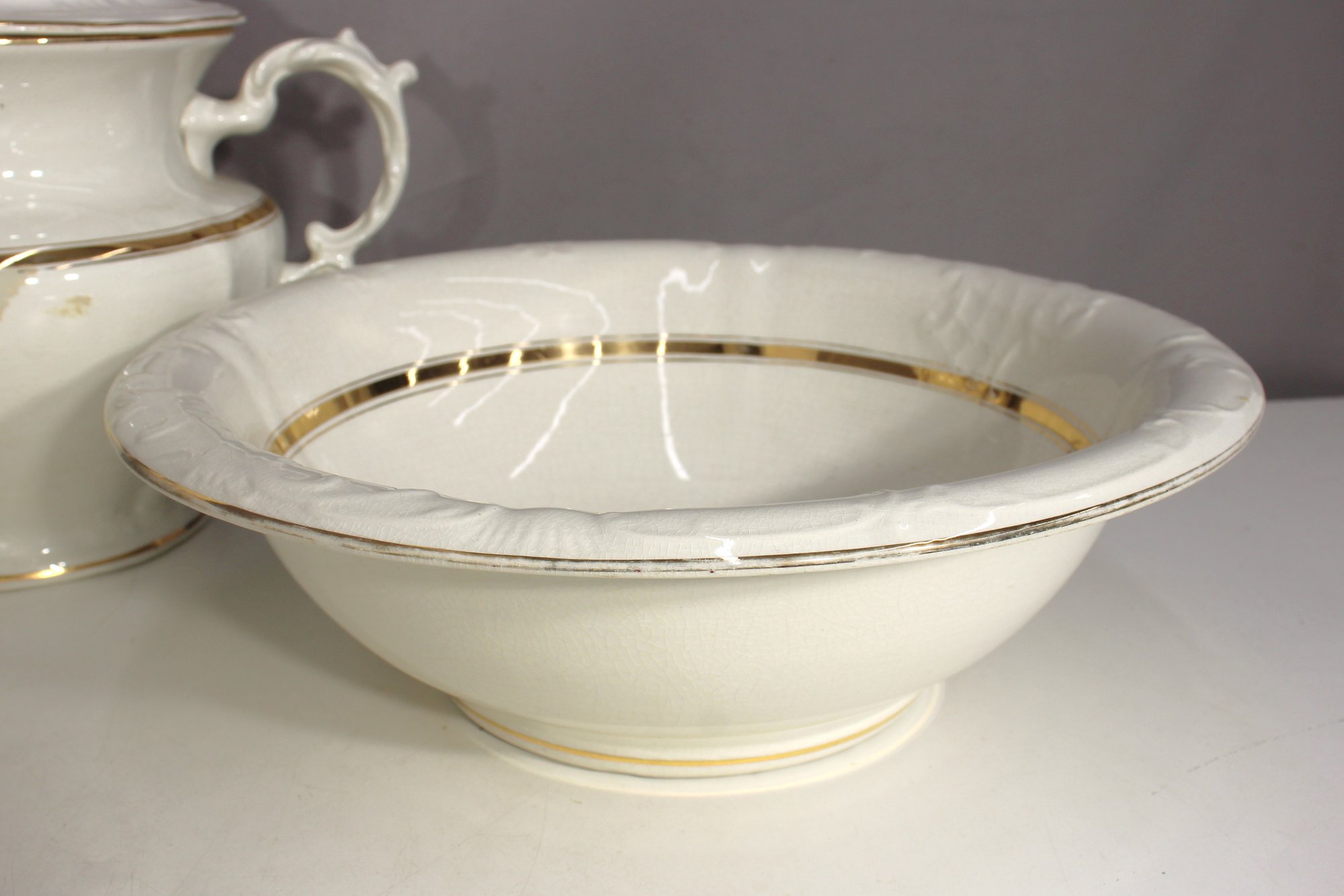 Large Wash Bowl – Wide, deep basin with gold accents
