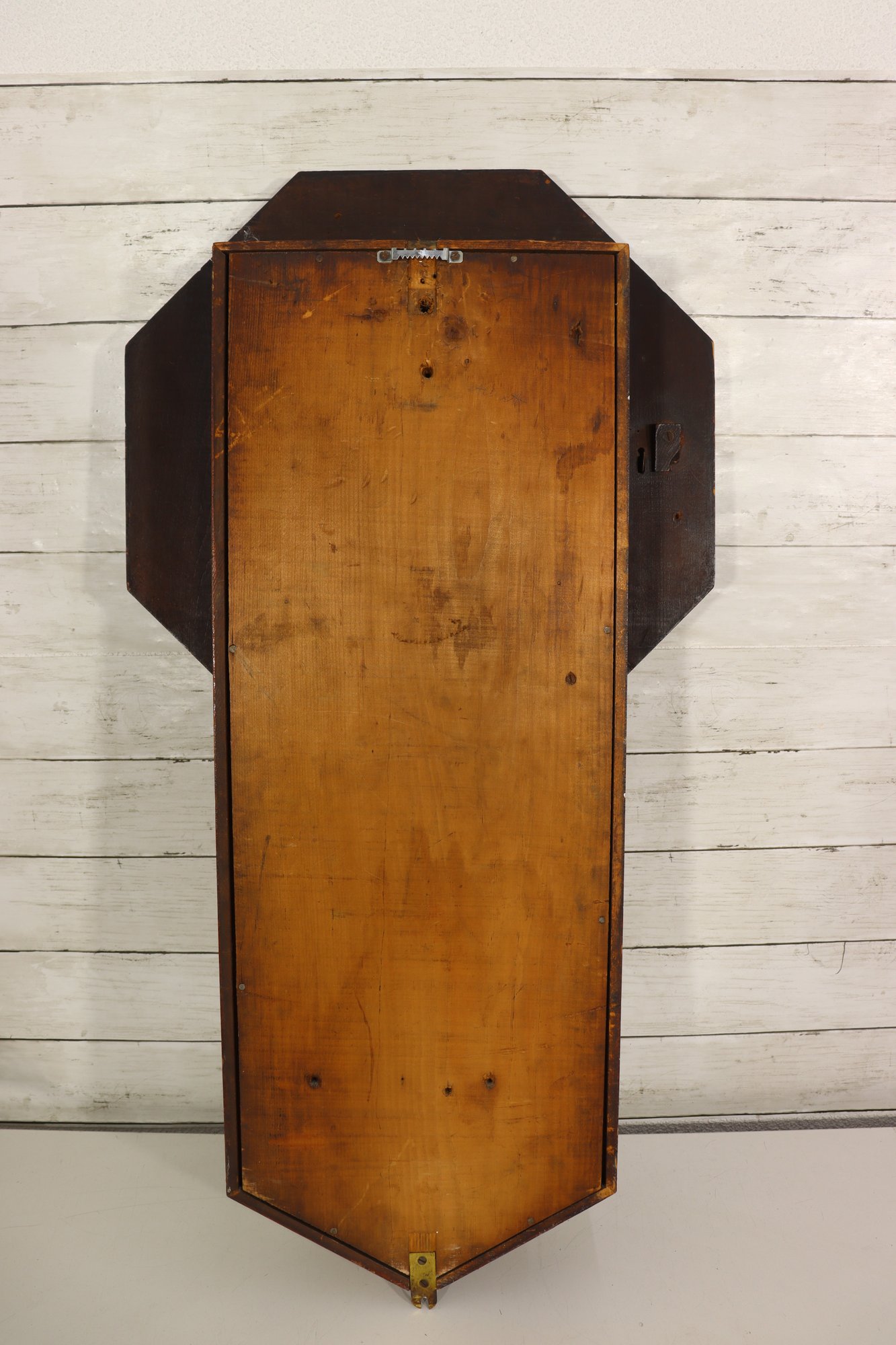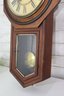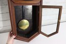 Clock includes brass pendulum inside lower cabinet. Clock is UNTESTED – condition and working status are unknown and not guaranteed. Sold as-is for parts, repair, restoration, or display.
