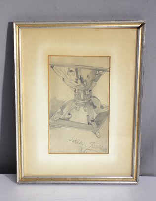 The drawing is elegantly framed with a silver-toned frame and cream matte, lending it a classic and timeless presentation that complements the historic nature of the artwork.
